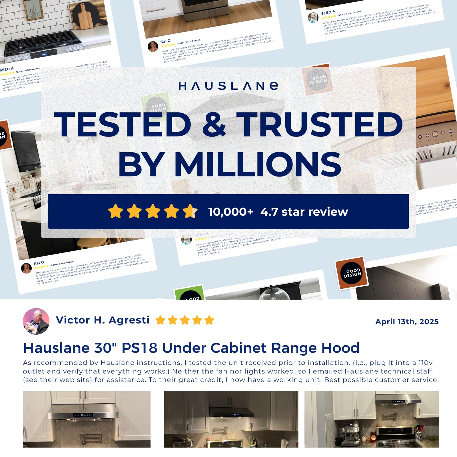 LOW-NOISE OPERATION: Our uniquely designed duct system and dual motor are extremely effective in reducing airflow noises so you can have a conversation while cooking!