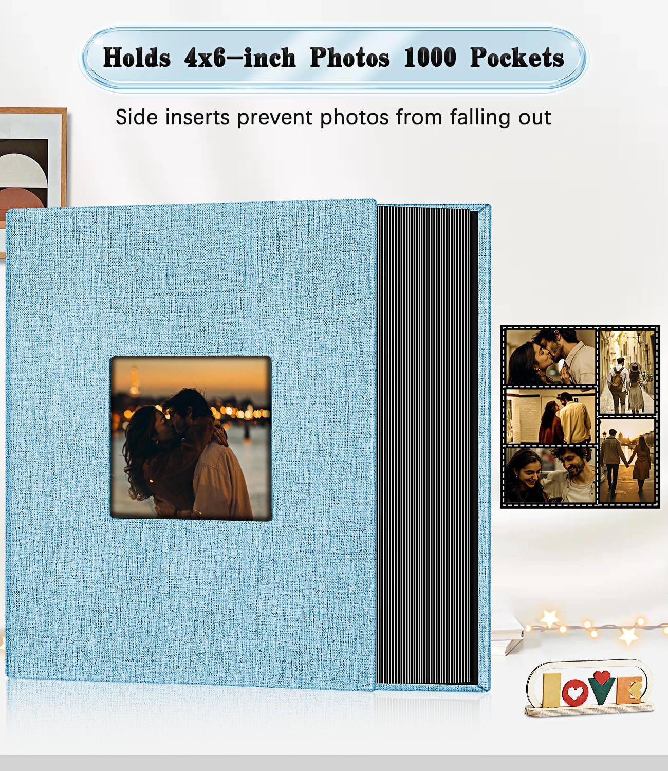 💖 Perfect Storage Capacity: This hardcover photo book is 13.2 L x 12.4 W x 2.8 Thick (inches) with 100 sheets/200 pages. Each page has 5 pockets that hold a total of 1000 4x6 photos.Photos fit snugly in the pockets and won't slip out. Perfect for storing your family, wedding, anniversary, baby and holiday photos, so you can organise and display your photos beautifully and conveniently.