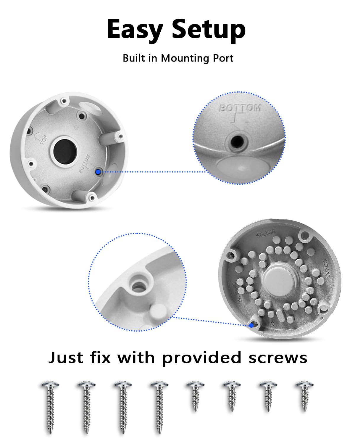 [EASY INSTALLATION ]-This sturdy junction box can save your worries of cracking the bracket by mistake and it is reusable. Solid screws are included. You can mount it according to your needs.