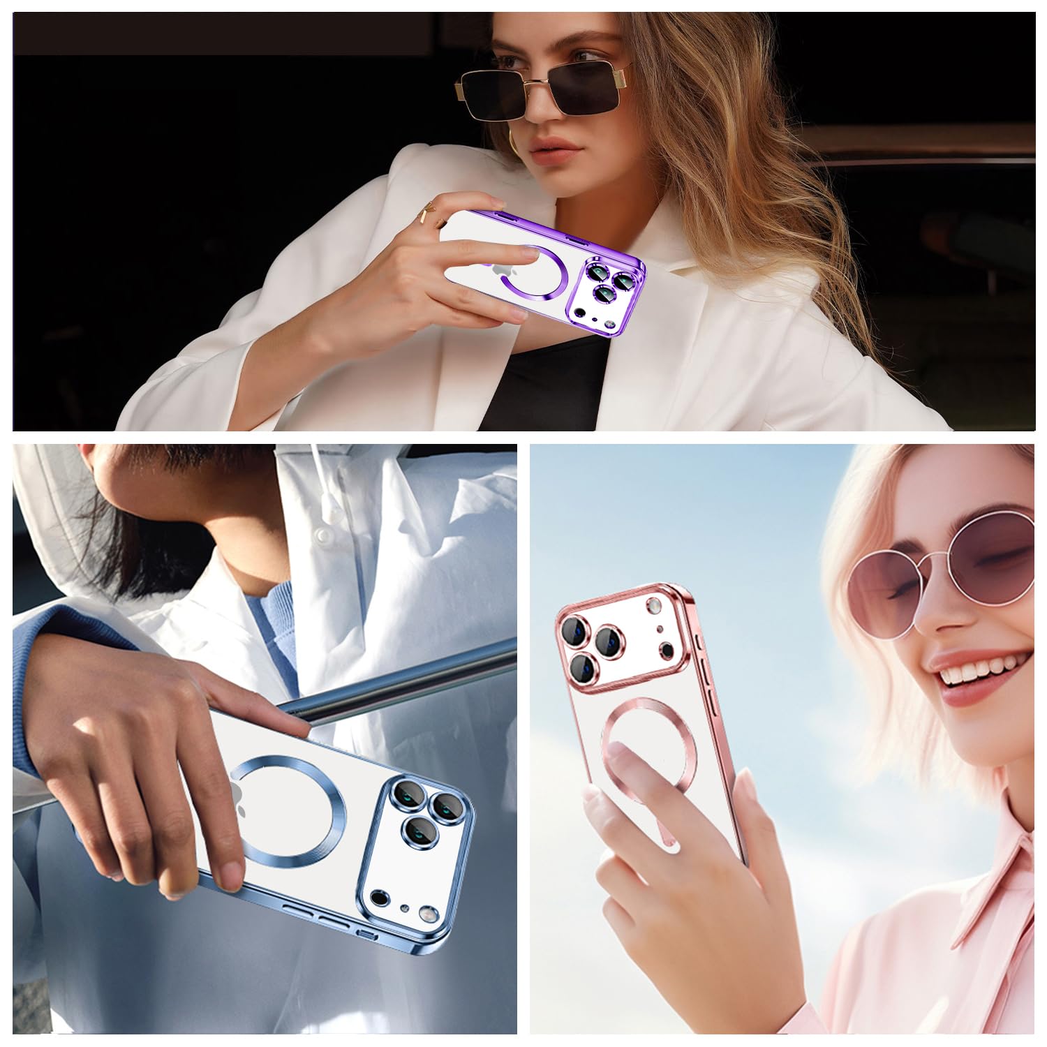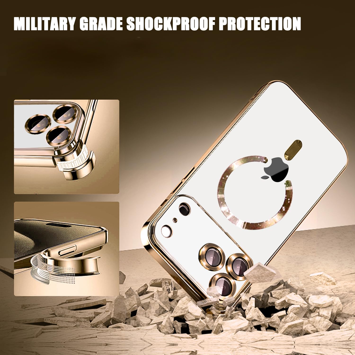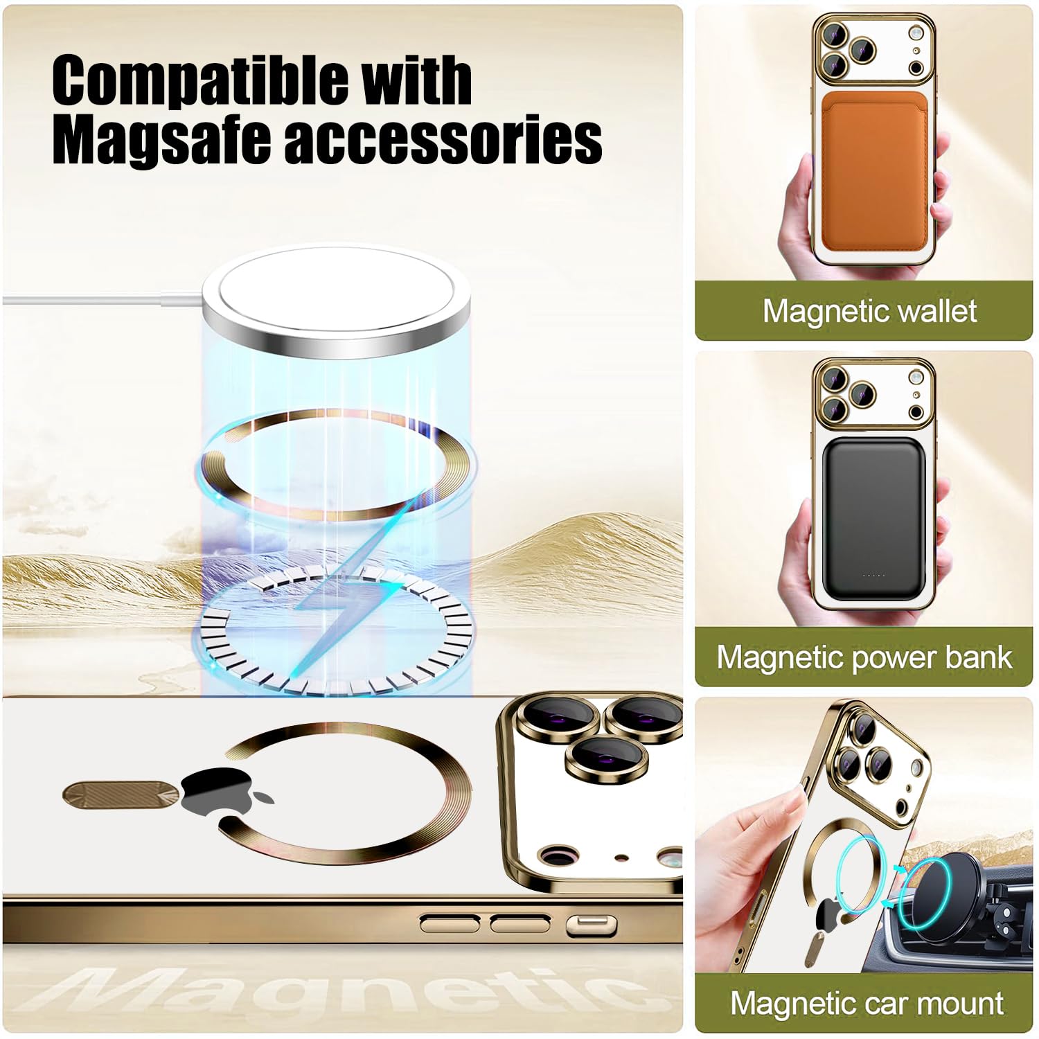 【Fashionable and Magnetic Strips Design】Luxury electroplate plating edge,makes your new mobile phone Special, Lovely, Fashion,Cool,and Built-in newly upgraded N52H ultra-thin magnets, compatible with all MagSafe accessories, offer seamless attachment and 20W original wireless charging speed.