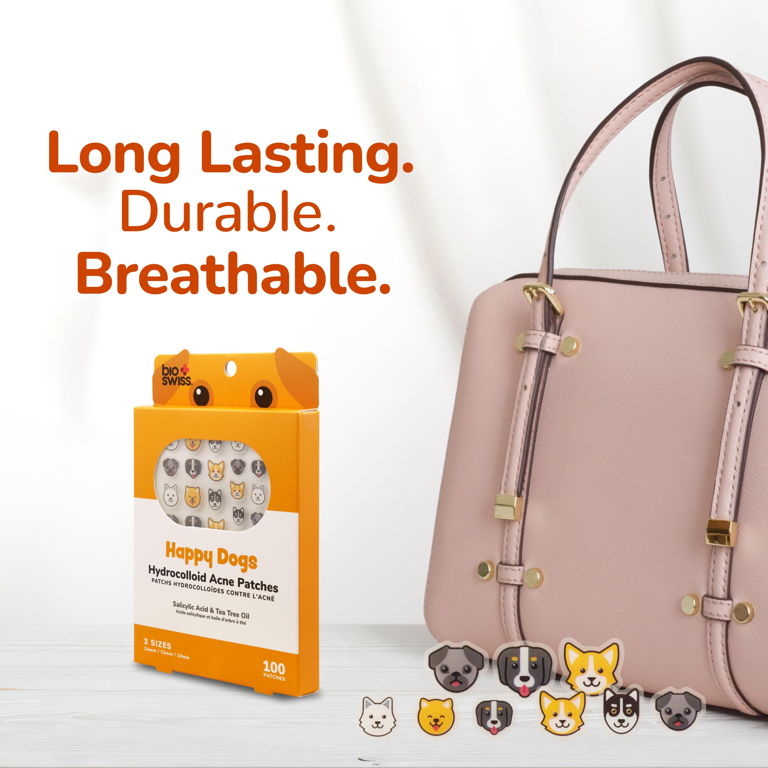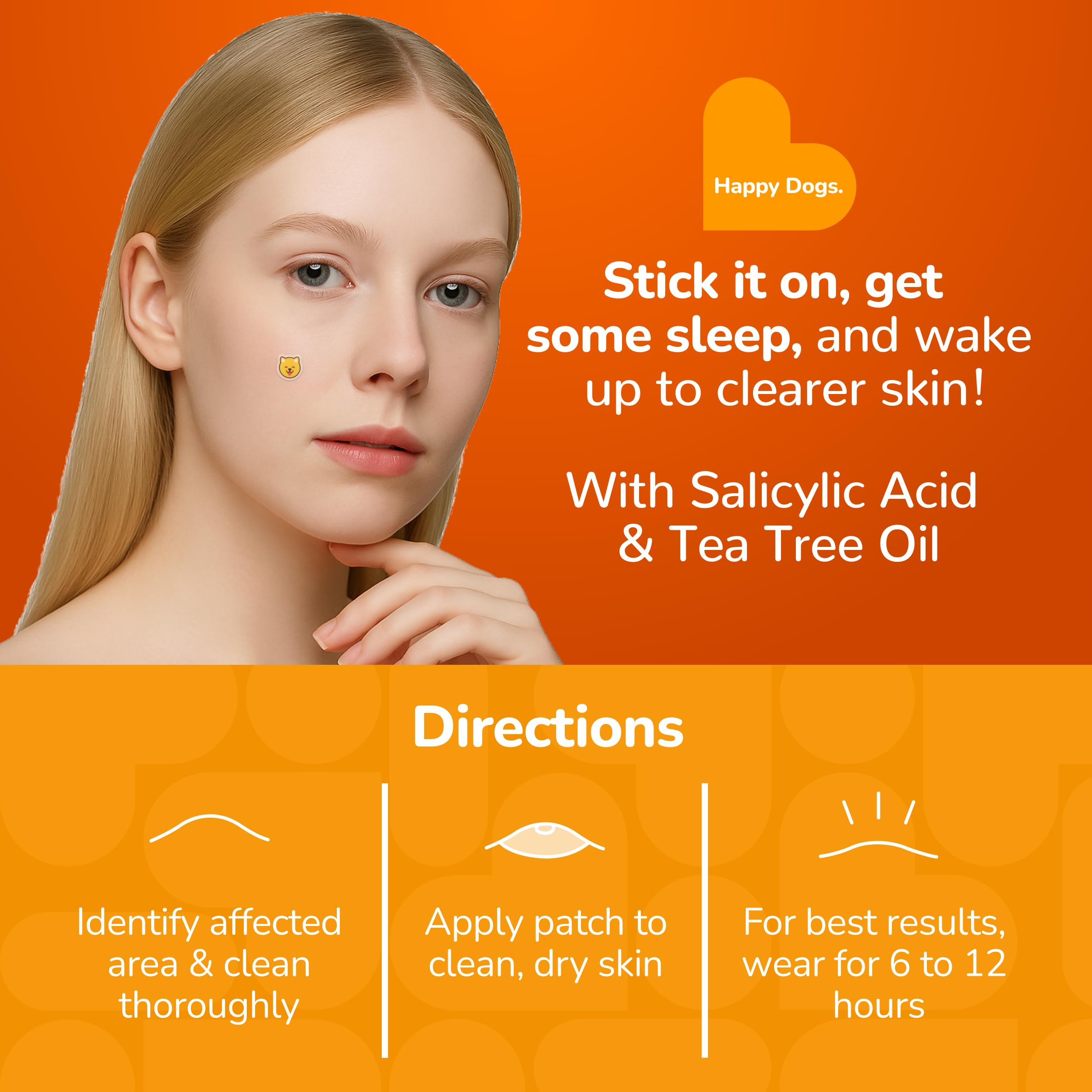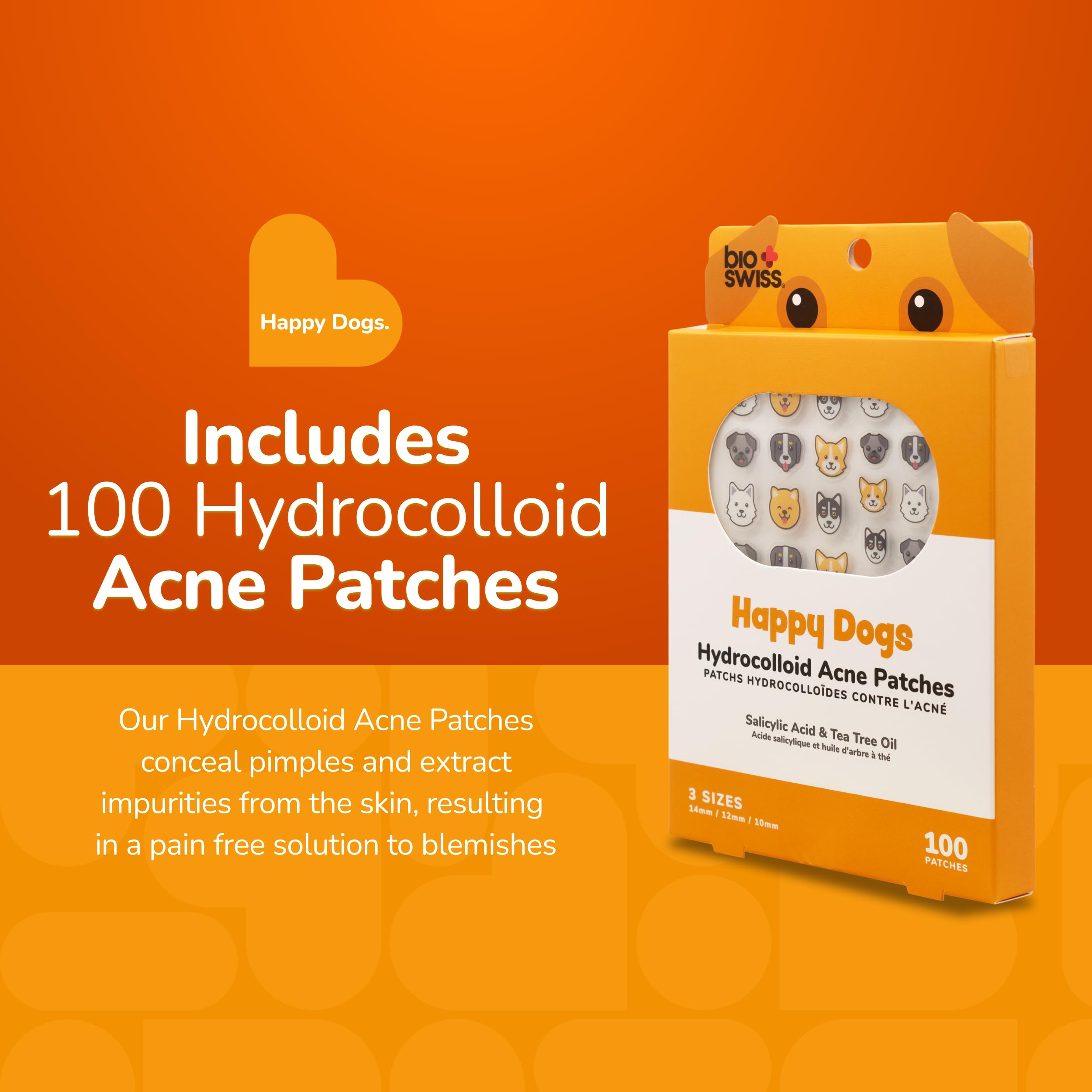 HAPPY DOGS ACNE PATCHES: Tackle zits and blemishes effectively and achieve clear and smooth skin with our Happy Dogs Acne Patches. Our patches for pimples come in 6 funny and cute assorted styles: