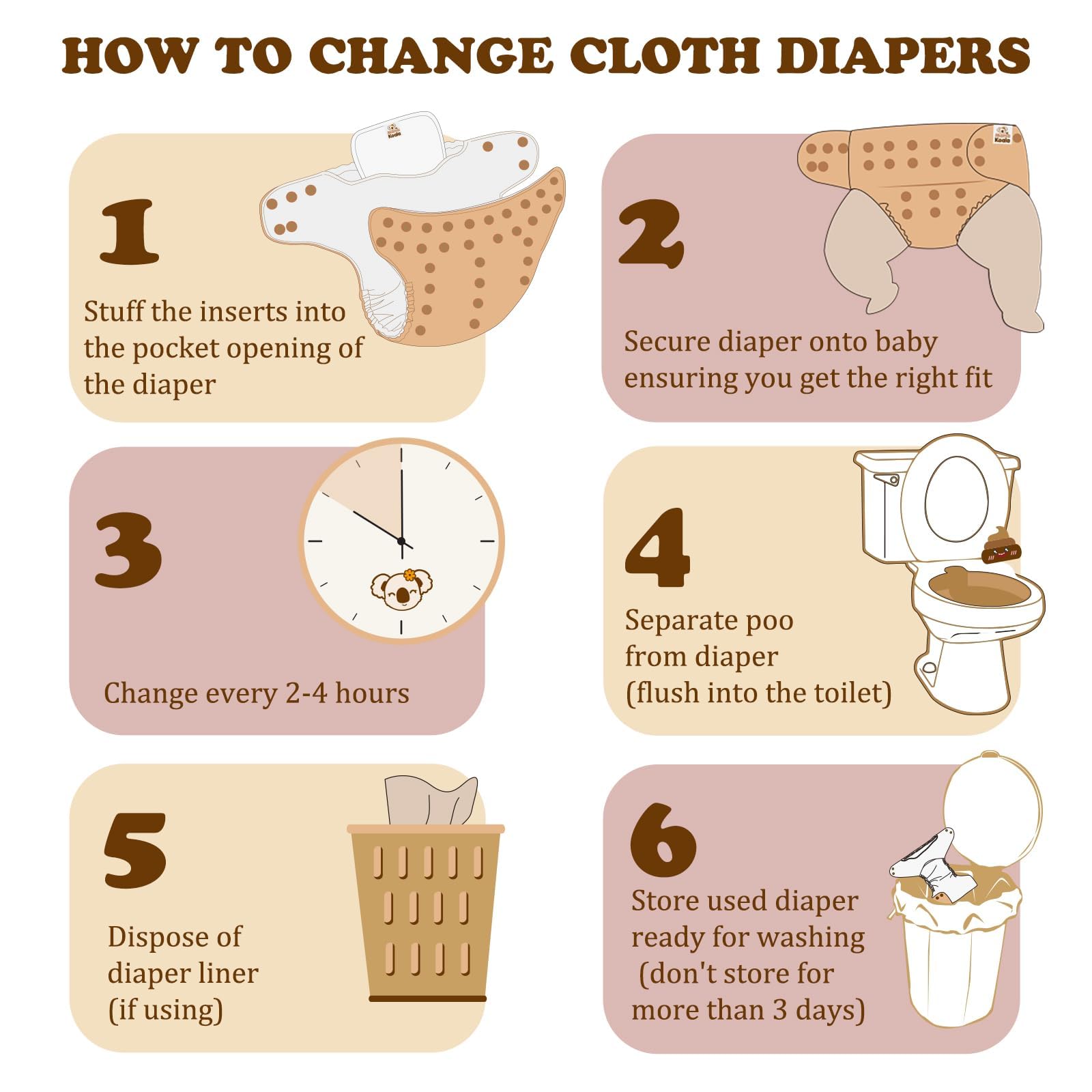 ULTIMATE ABSORBENCY - Including six adjustbale 4-layer natural microfiber cloth diaper inserts. Blowout free days and leak free nights guaranteed!