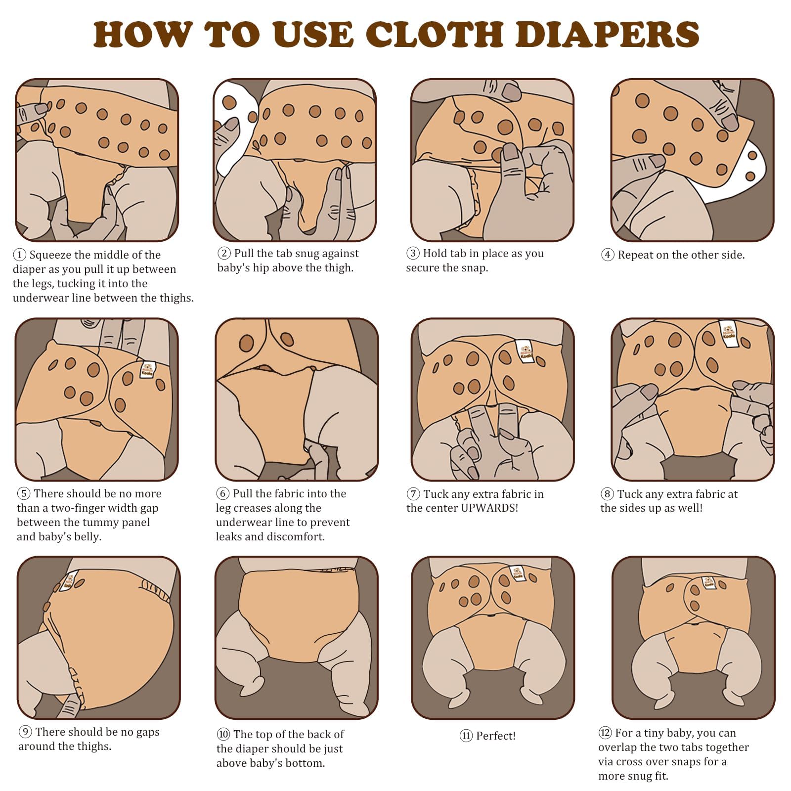 SLIM FIT AND ANTI LEAK - Perfect fit with crossover snaps and hip snaps to avoid wing droop and keep the diaper in place. Snug leg openings and waterproof TPU cover ensure both breathability and leak prevention.