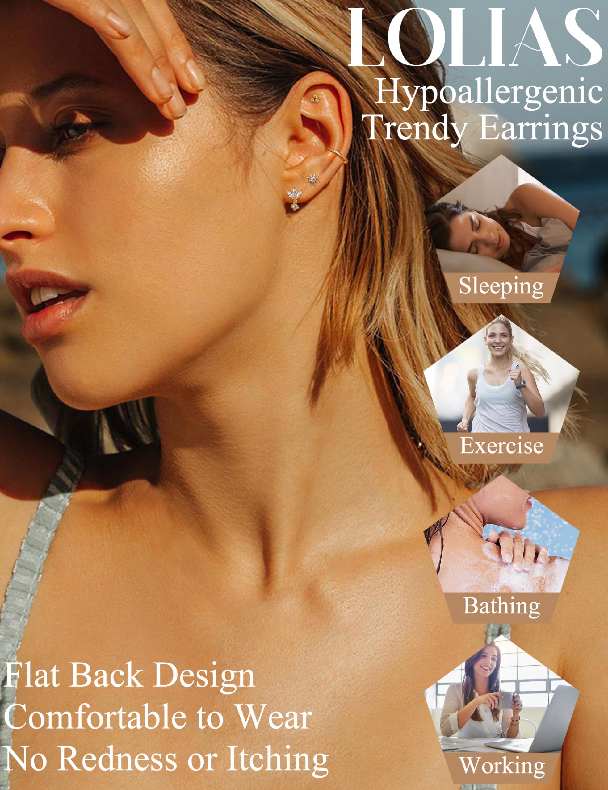 Easy to Wear --Threadless Push in design,compared to traditional threaded Flat Back styles, you only need to move your fingers to put the ear piercing jewelry on and take off in one second. No more screw anything behind your ears,and you don’t have to worry about the threads scratching your sensitive skin.These nap flatback earrings offer convenience and comfort, ensuring a comfortable experience even during sleep, sports activities, daily activities,or showers