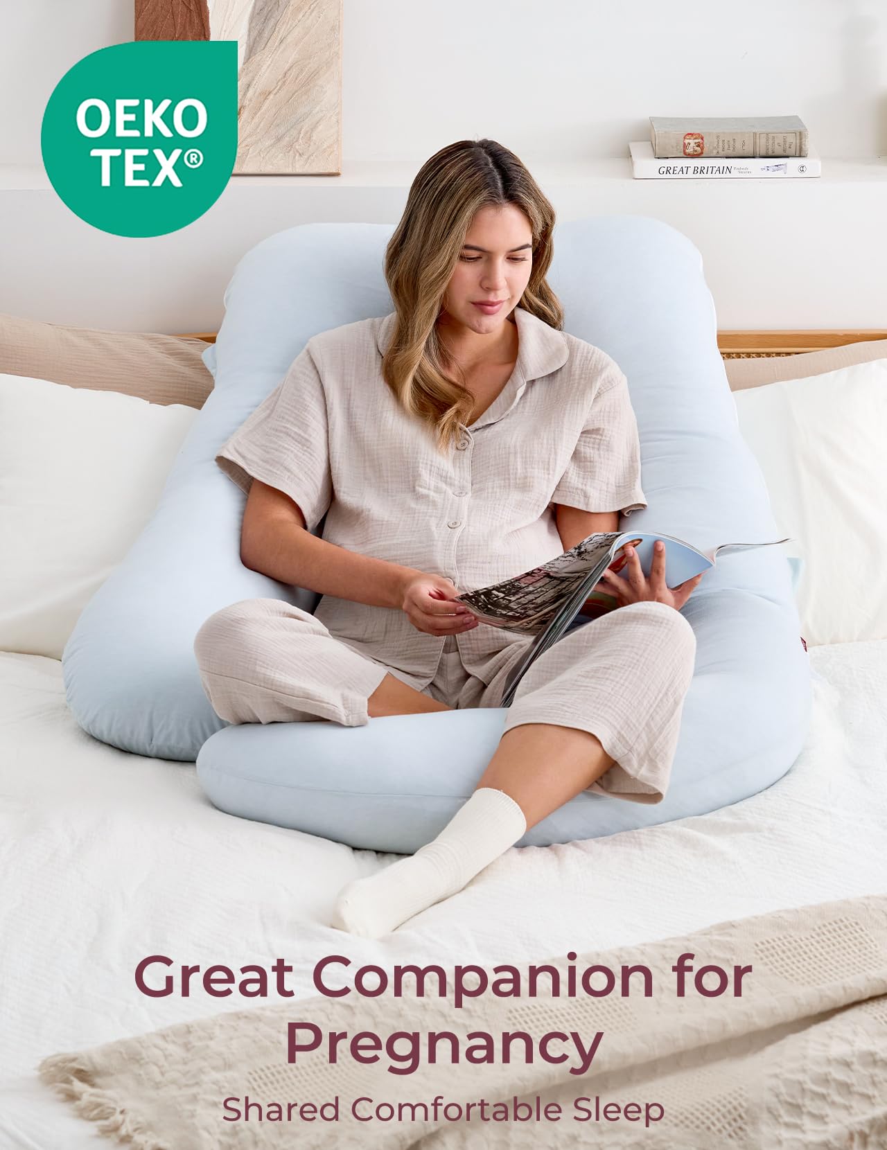 Full Body Support Pillow - Ergonomic U shaped pregnancy pillow designed to replace the needs of multiple bed pillows, it hugs your entire body and conforms to both sides, perfectly support the head, back, belly, sides, knees, hip, and feet.
