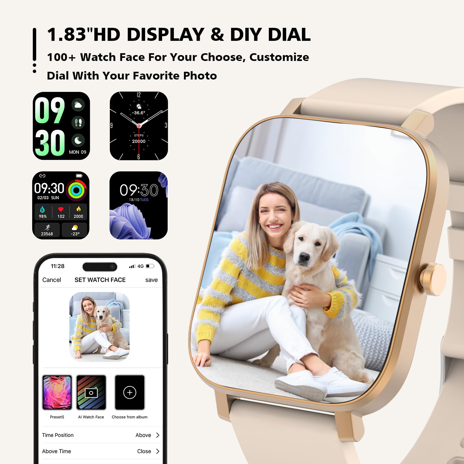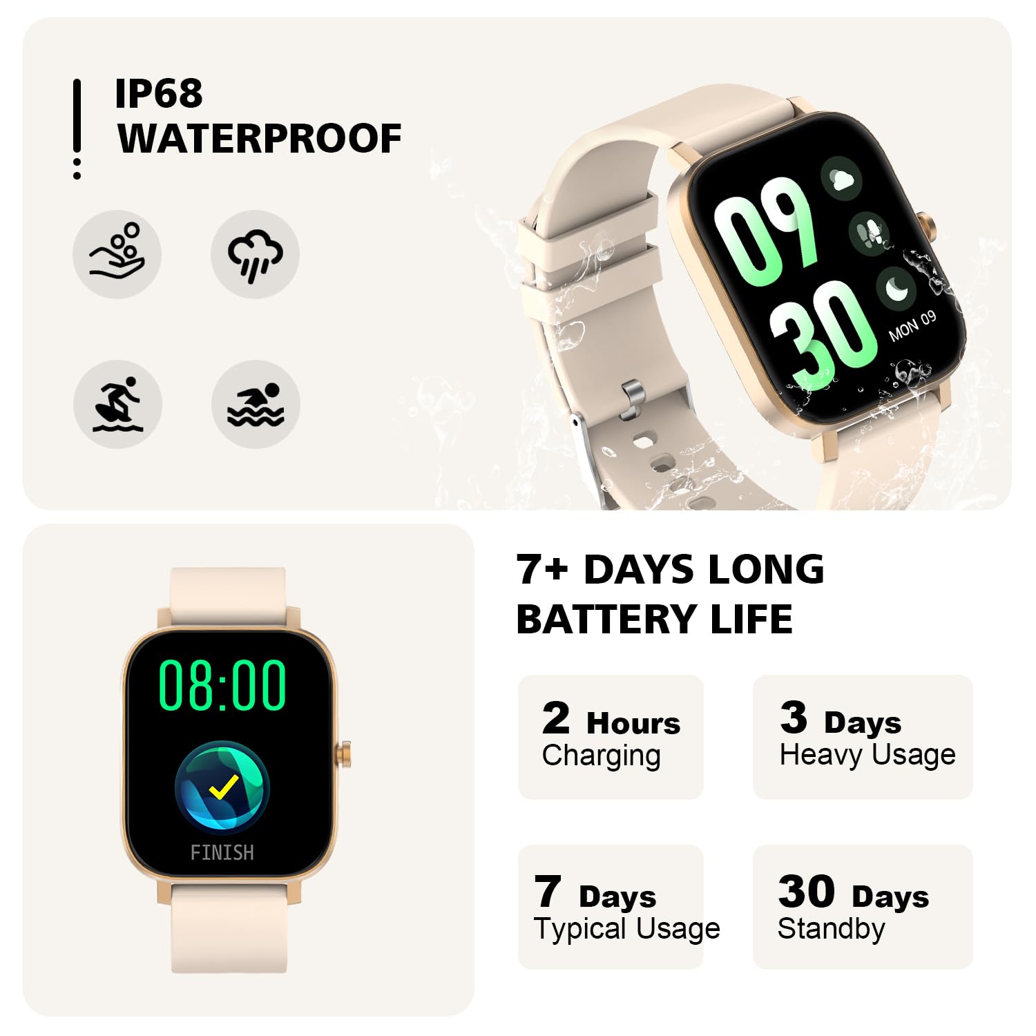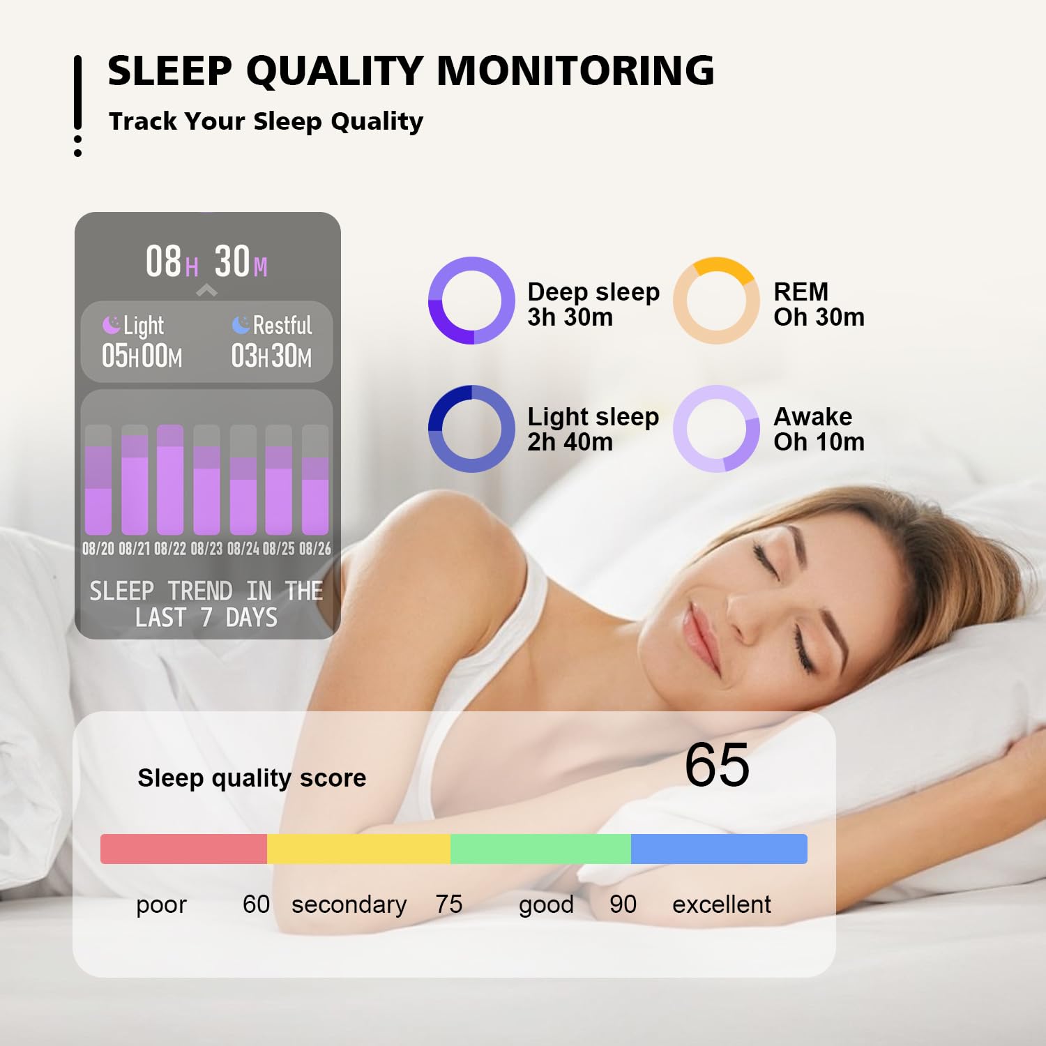 24 Hours Health Monitoring: This smart watch for man women features real-time heart rate monitoring,pressure monitoring, exercise recording and sleep monitoring, accurately records all-day activities such as steps, calories burned a fitness watch to monitor your health at all times.