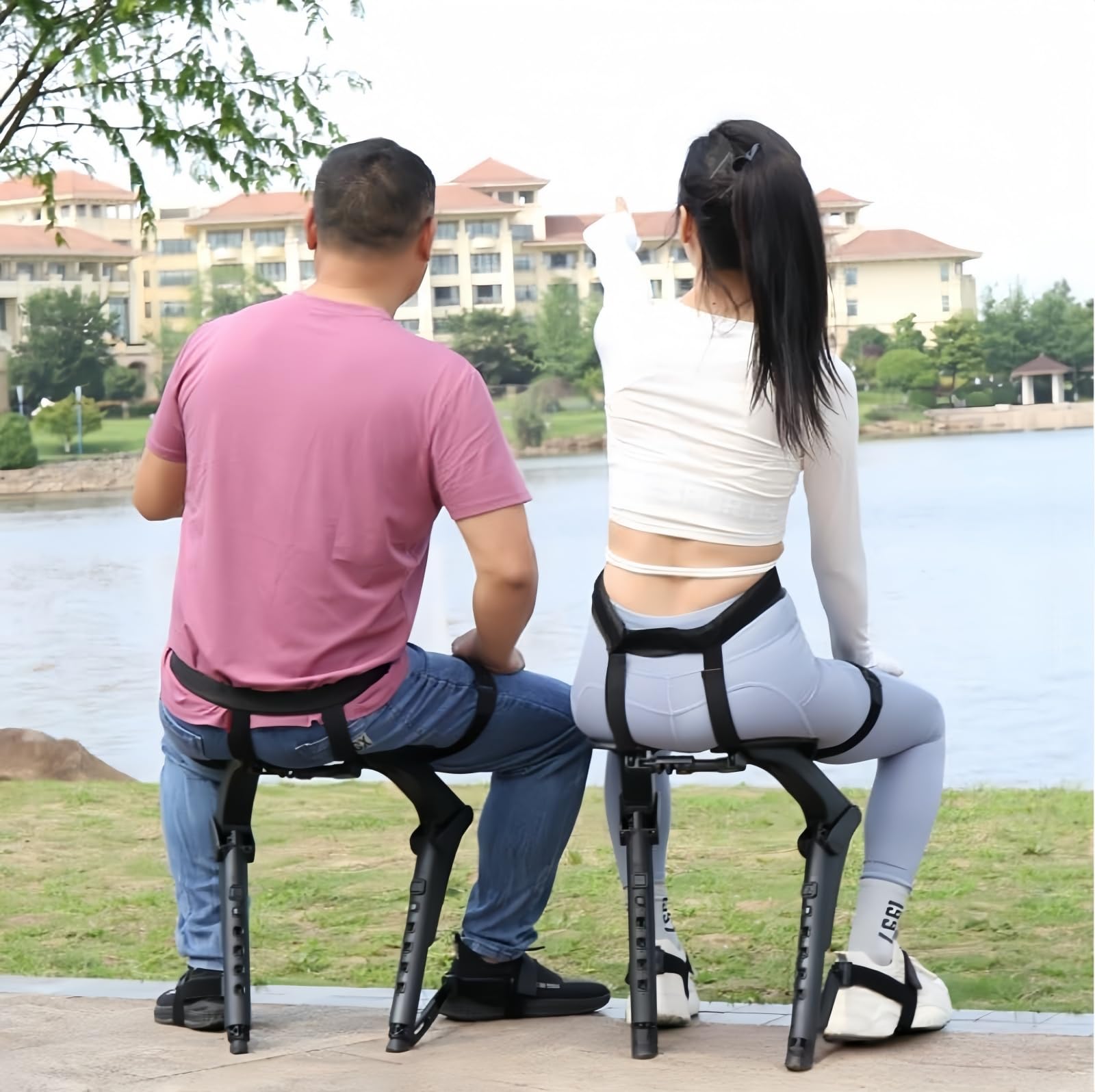Industrial Exoskeleton Support Rig, Mechanic’S Body Dock, Leg Walking Assistance, Portable Outdoor Seats Fold, Tactical Pack-and-Go Stool (Black)