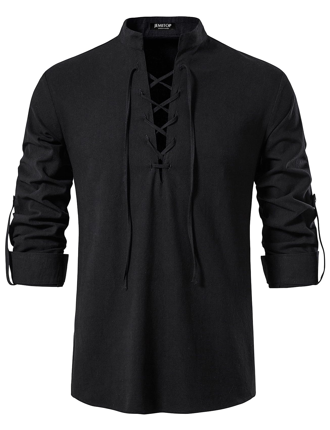 Design Concept: Cosplay costume for renaissance,pirate,viking,medieval,halloween / Retro drawstring shirt / Regular fit / Mandarin collar / Long sleeve / Rolled sleeve