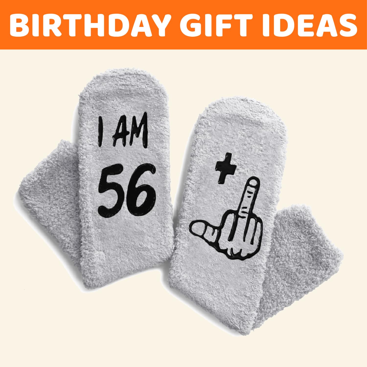 GIFTS FOR MEN IN THEIR 57S: "I AM 56+." Say it with socks - These are suitable for any holiday gifts, like Birthday gifts, White Elephant gifts, Christmas gifts, Fathers Day gifts.