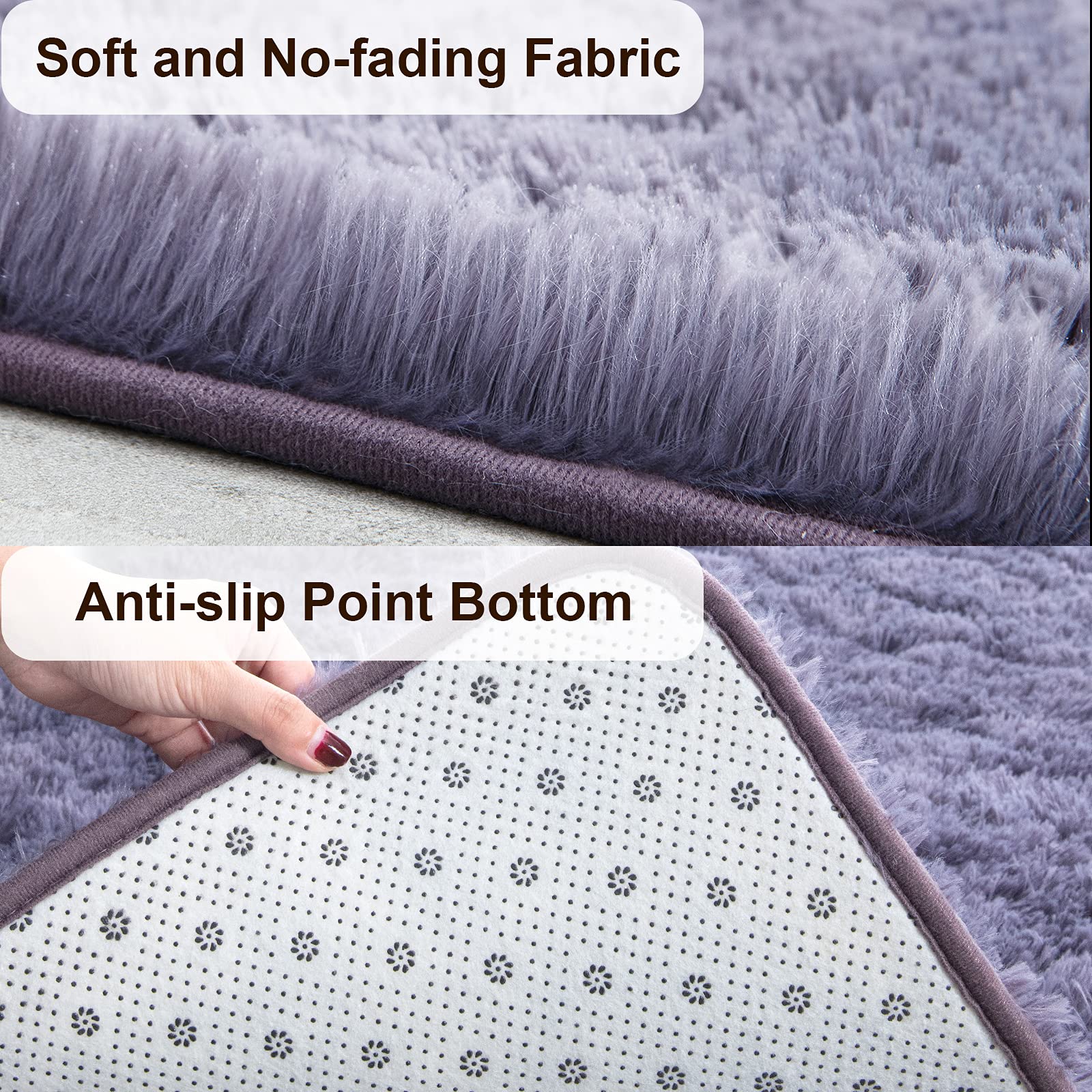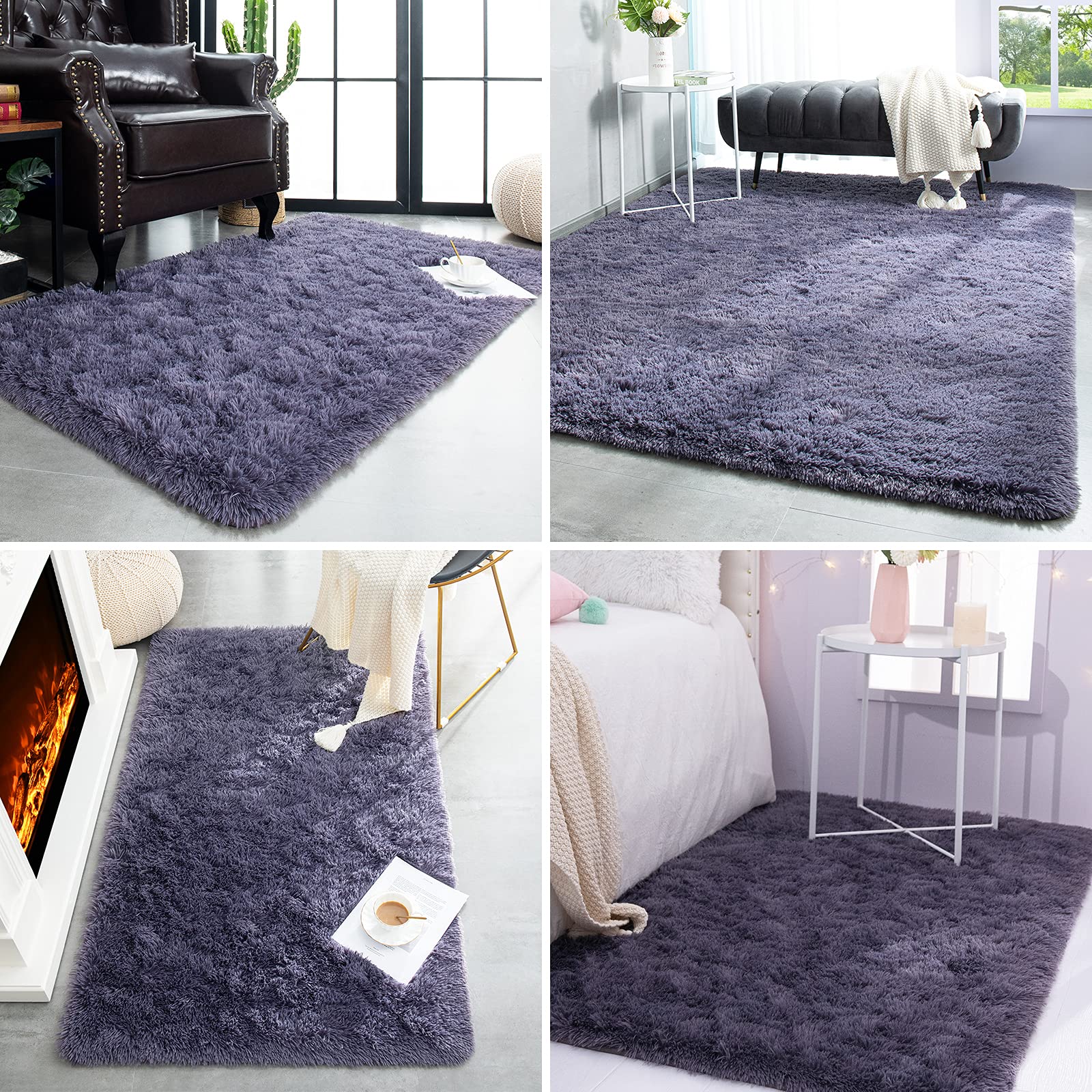 Premium material:Different comfort experience - Our fluffy soft rug is made of synthetic microfiber, which makes your bedroom rug is more comfy and soft. There are 4 practical sizes of the washable fluffy area rugs you can choose from