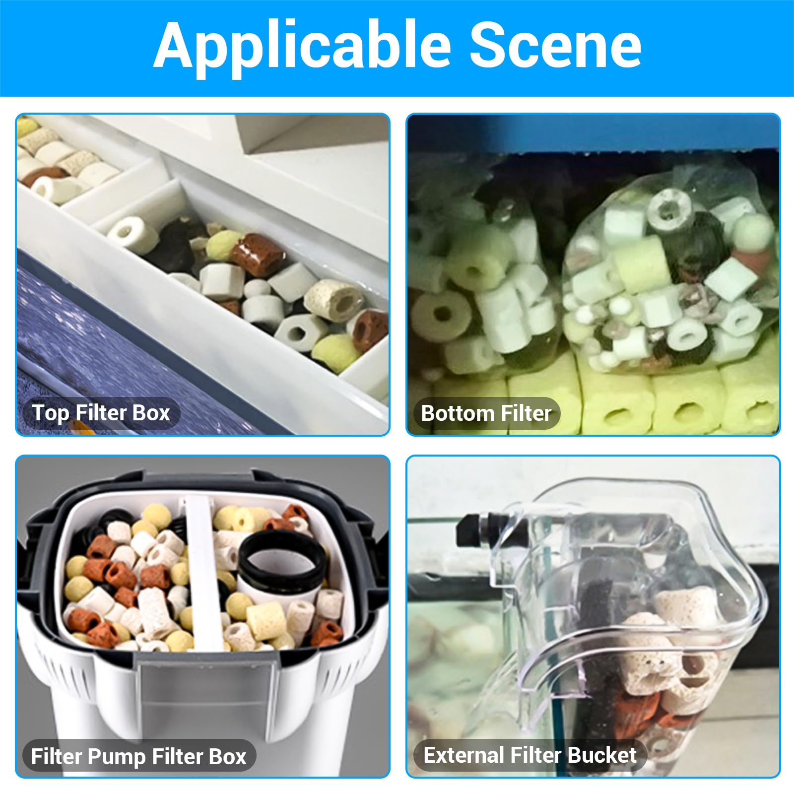 Applicable Scene: Our bio media for aquarium filters can be widely used in various settings, including top filter boxes, bottom filters, filter pump filter boxes, external filter buckets, and more. They contribute to a healthier environment for your fish or aquatic plants.