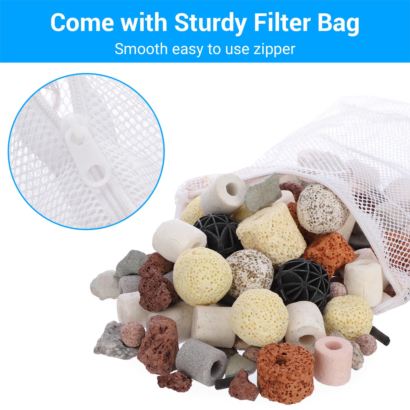Come with Zip Mesh Bag: The good mixture of bio media comes in a well made mesh bag with smooth zipper, making it easy to remove and clean. The activated carbon is packaged in a small separate bag. What's more, using activated carbon separately can ensure its great filtration effect.