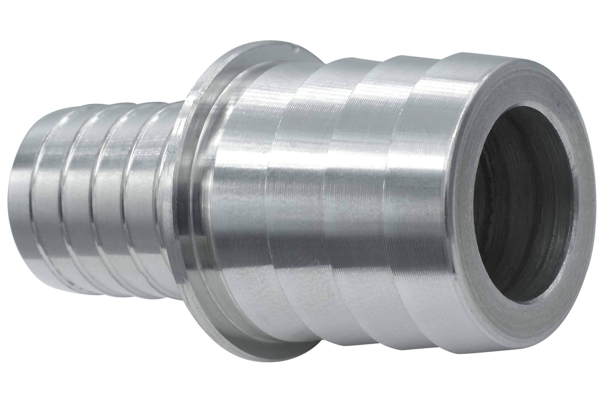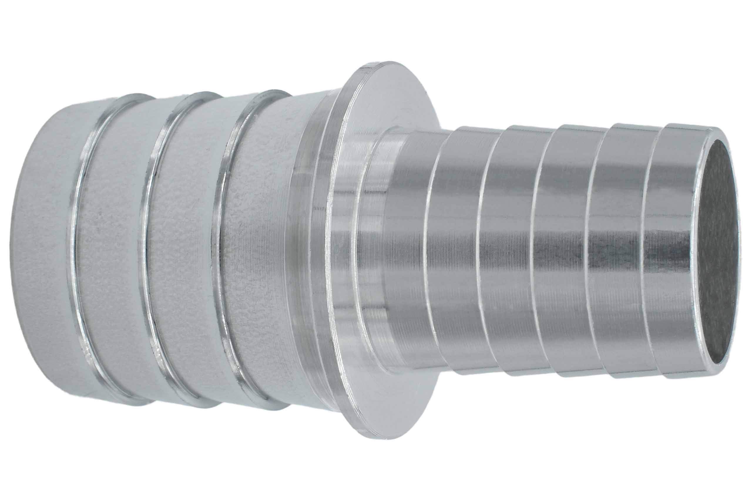 1.25" hose barb to 1.5" barb reducer with a hose stop flange to keep the coupler centered in the splice connection