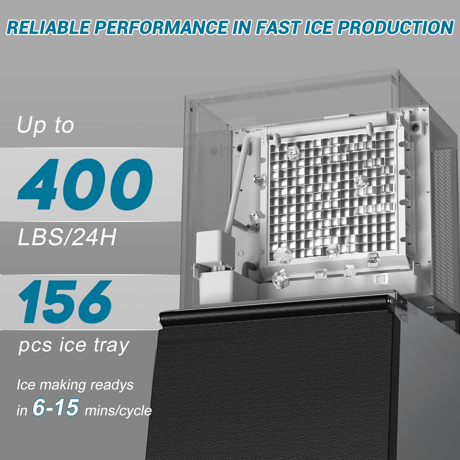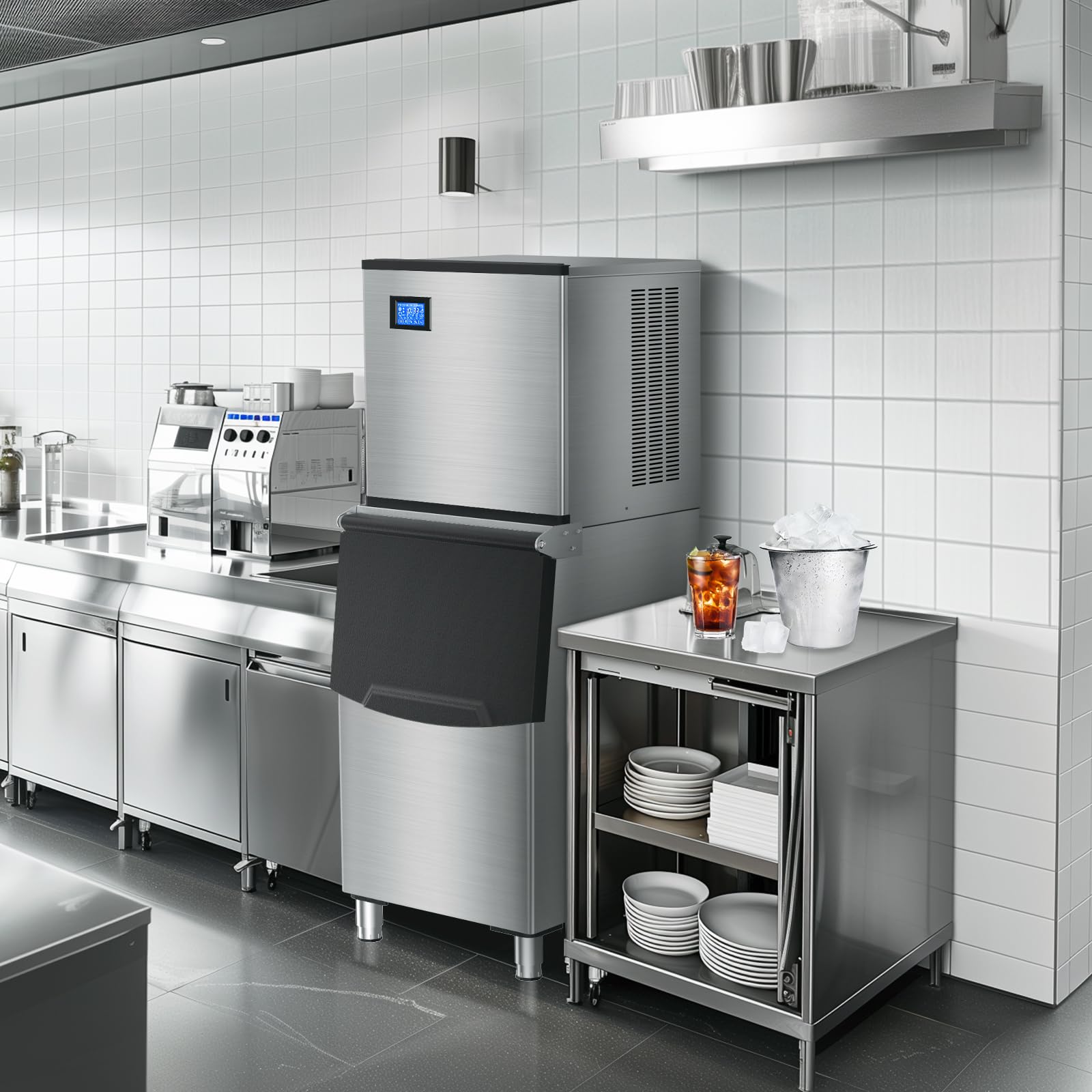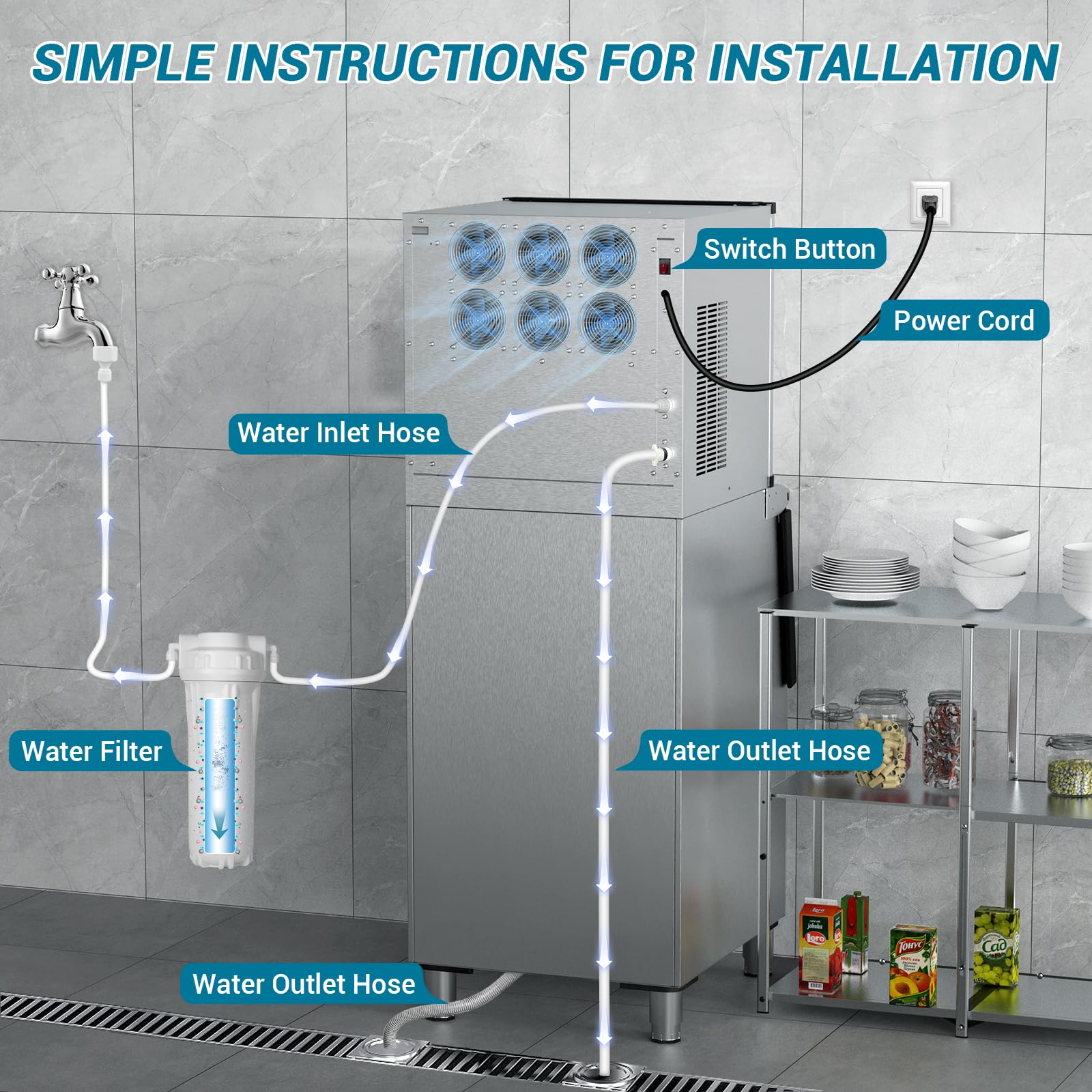 Versatile for Various Commercial Settings : Ideal for restaurants, hotels, bars, and event venues, this ice machine’s impressive production capacity makes it perfect for any setting requiring a constant and substantial ice supply. Enjoy versatility and reliability in one machine!