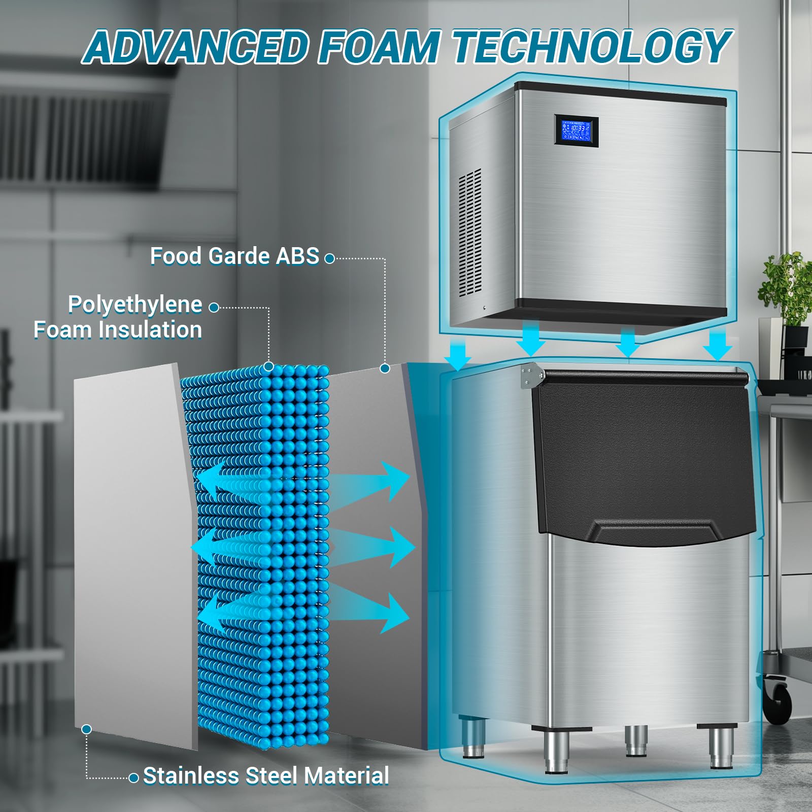 Long-lasting Insulation & Food-Safe Design : The high-quality insulation in the ice storage bin maintains optimal temperatures, while the food-grade PP liner ensures a clean and sanitary environment for ice production, adhering to health and safety standards.