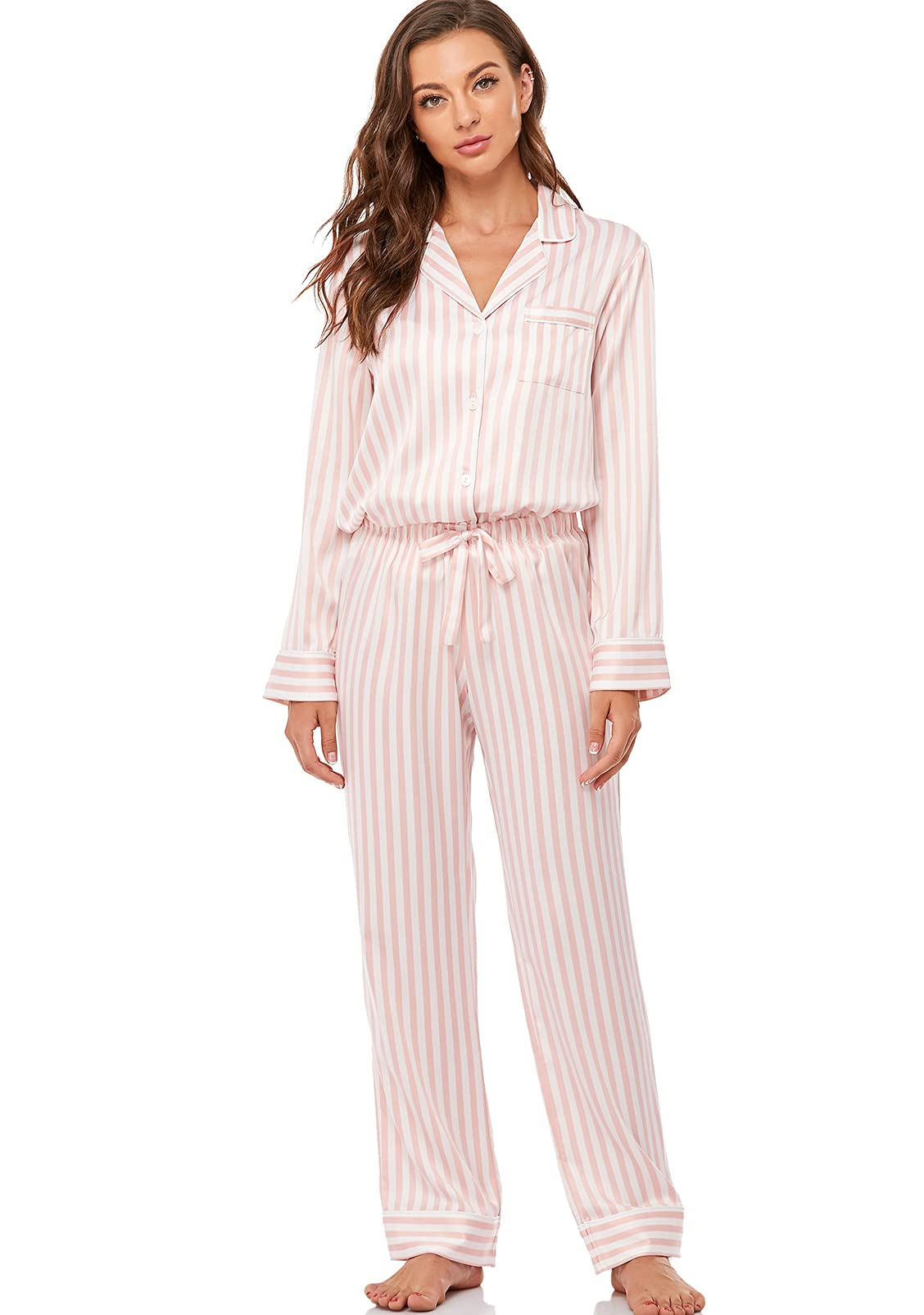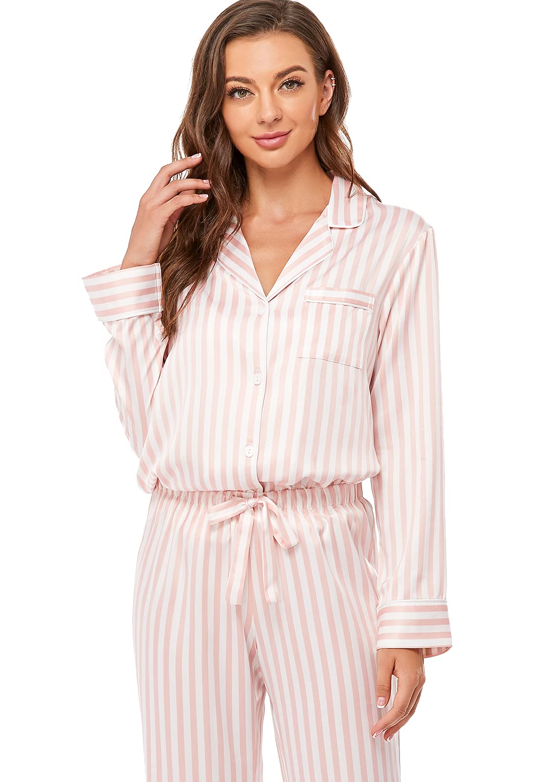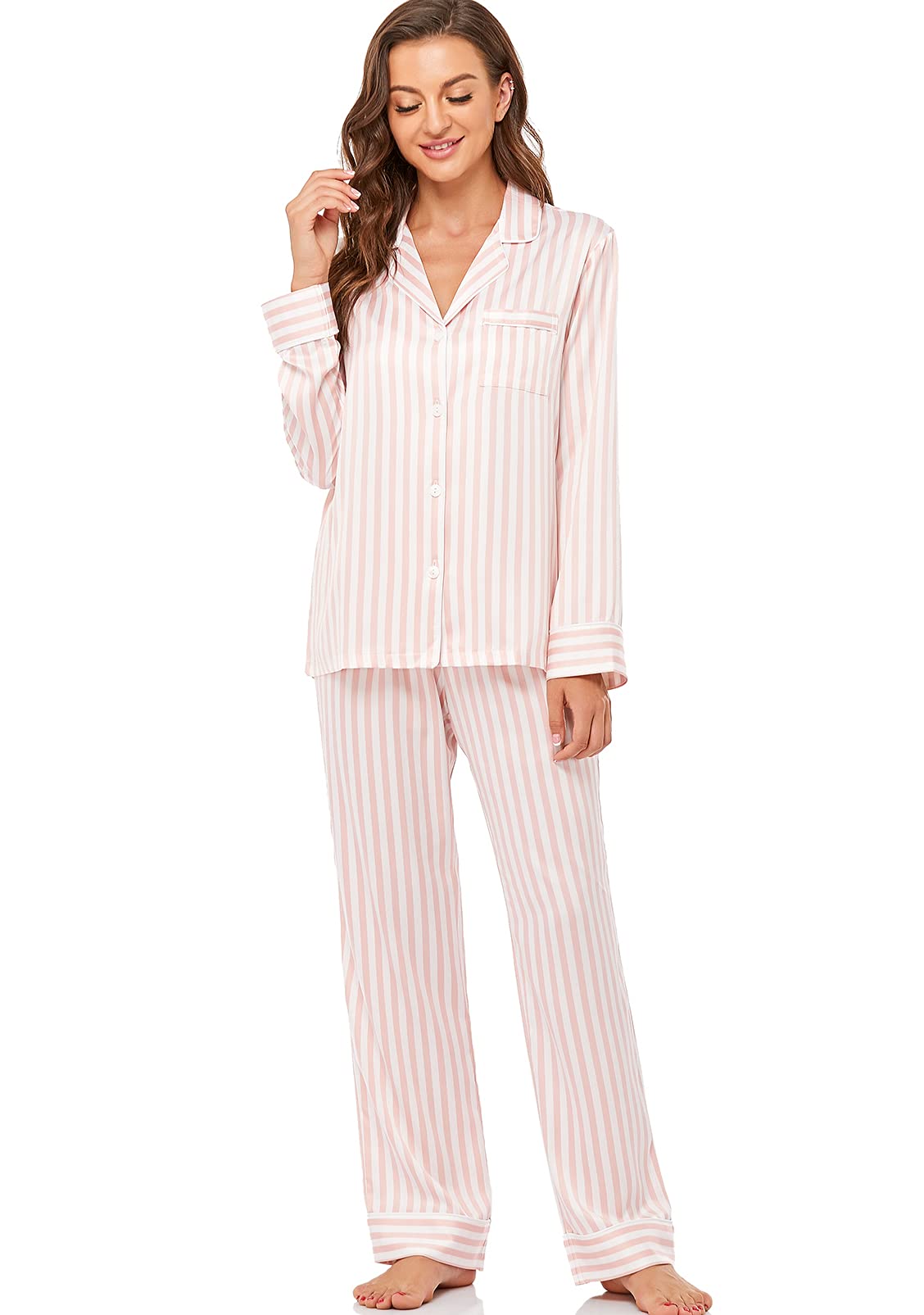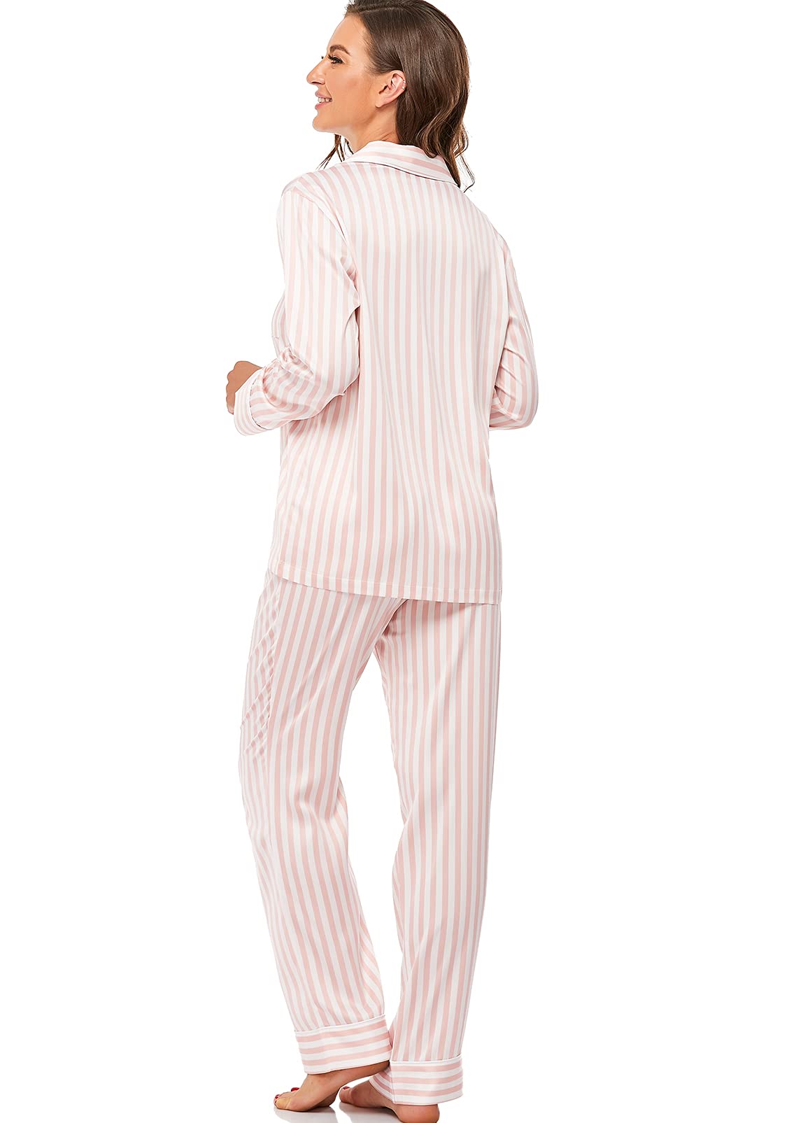 COMFORTABLE FABRIC: Made of high quality silk-like satin fabric, this pajama set is soft and lightweight, perfect for sleeping, lounging, or daily casual wear.