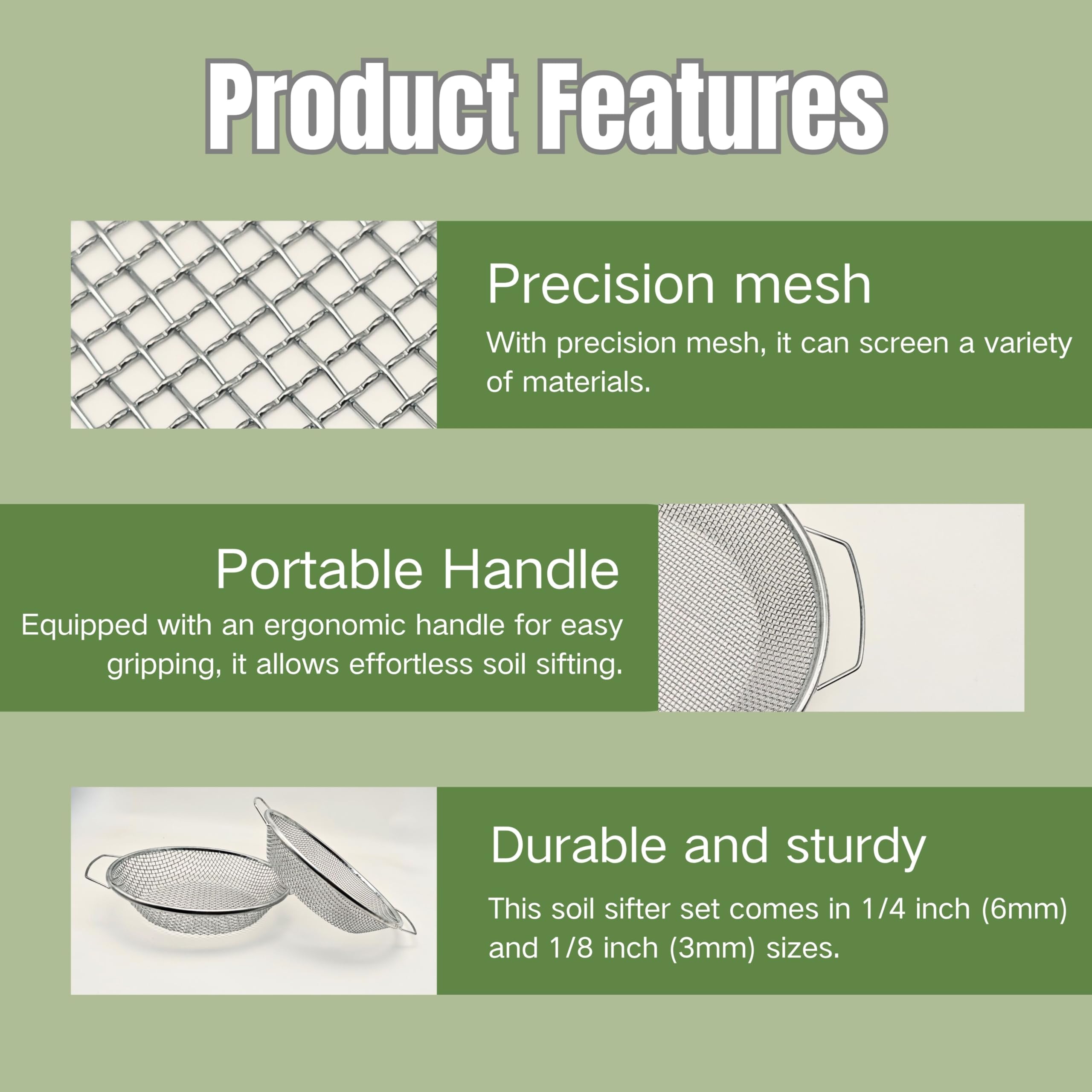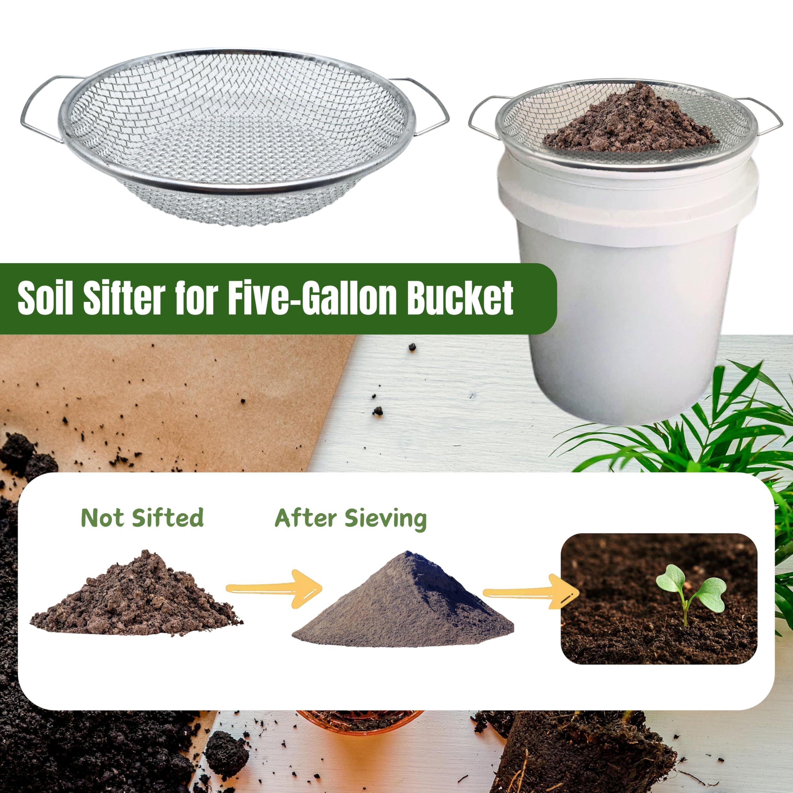 SUITABLE FOR 5 GALLON BUCKETS: This soil sifter set comes in 1/4 inch (6mm) and 1/8 inch (3mm) sizes, designed specifically for 5-gallon buckets. Save time and effort by placing either sifter over the bucket for efficient soil or aggregate separation.