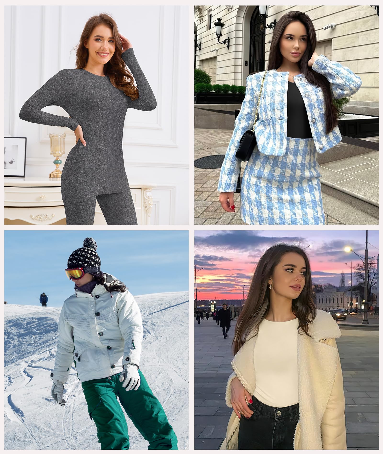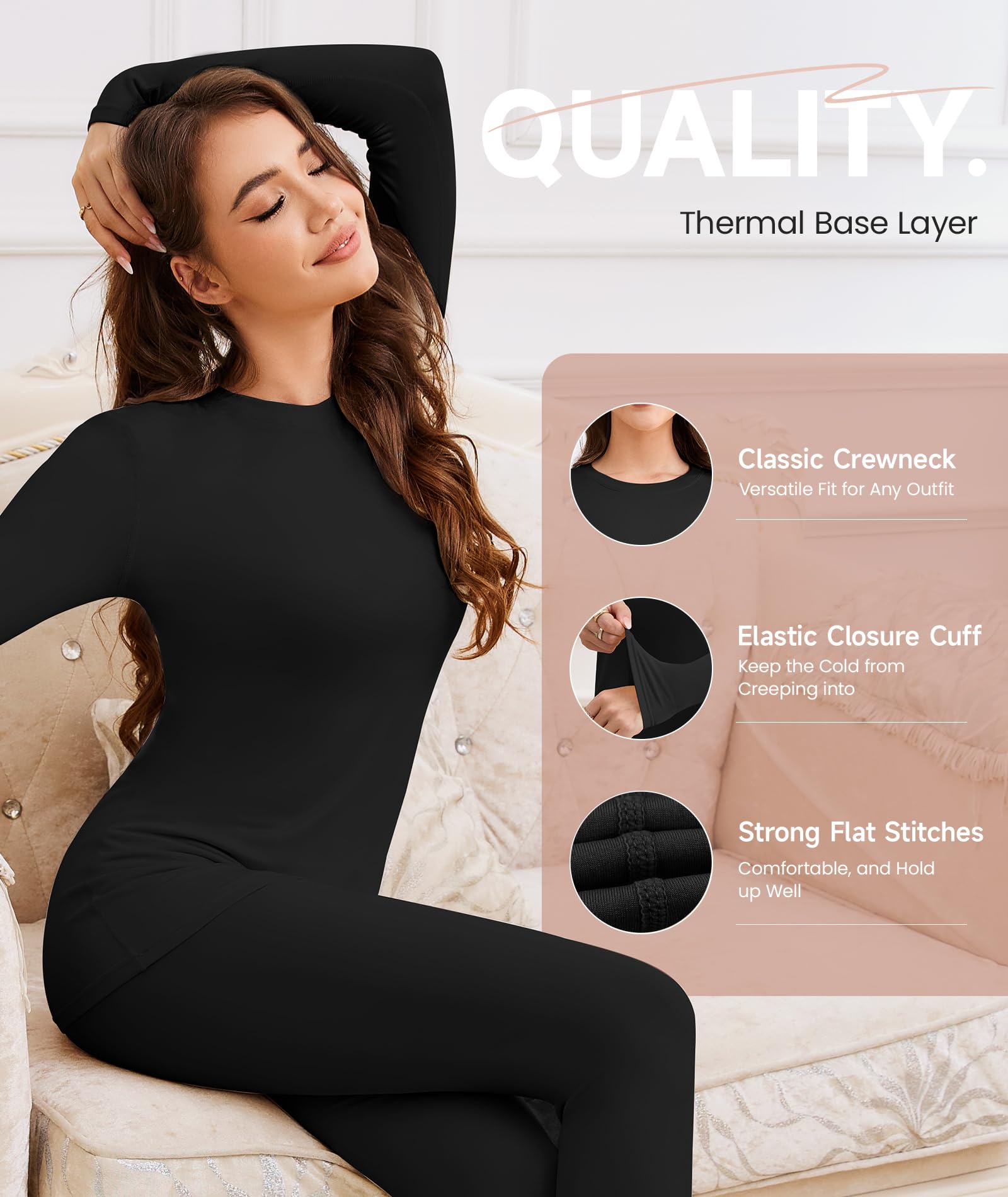 VERSATILE BASE LAYER: With a classic crewneck and closure cuffs, this thermal undershirt is a versatile wardrobe staple. Wear it as a cozy pajama top or style it with jeans, skirts, jackets, and coats for a variety of looks - whether you’re going for a chic, elegant, or sporty style, it adapts to any outfit effortlessly.