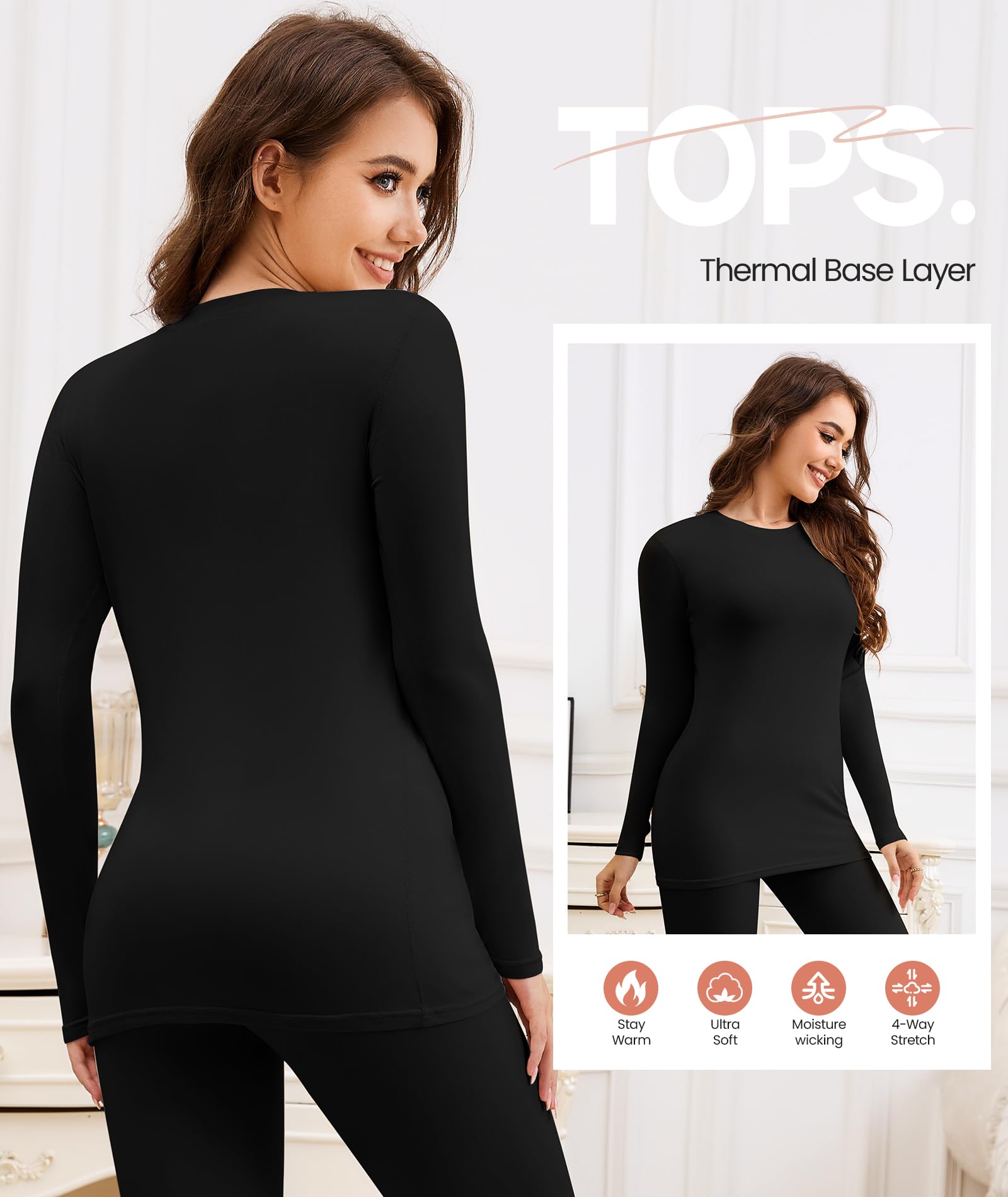 MOISTURE WICKING: Designed with moisture-absorbent, quick-drying properties, the thermal shirts for women keep you comfortably dry by quickly absorbing sweat even in the coldest conditions. Whether you’re relaxing indoors or braving the cold outdoors, stay cozy without the discomfort of humidity.