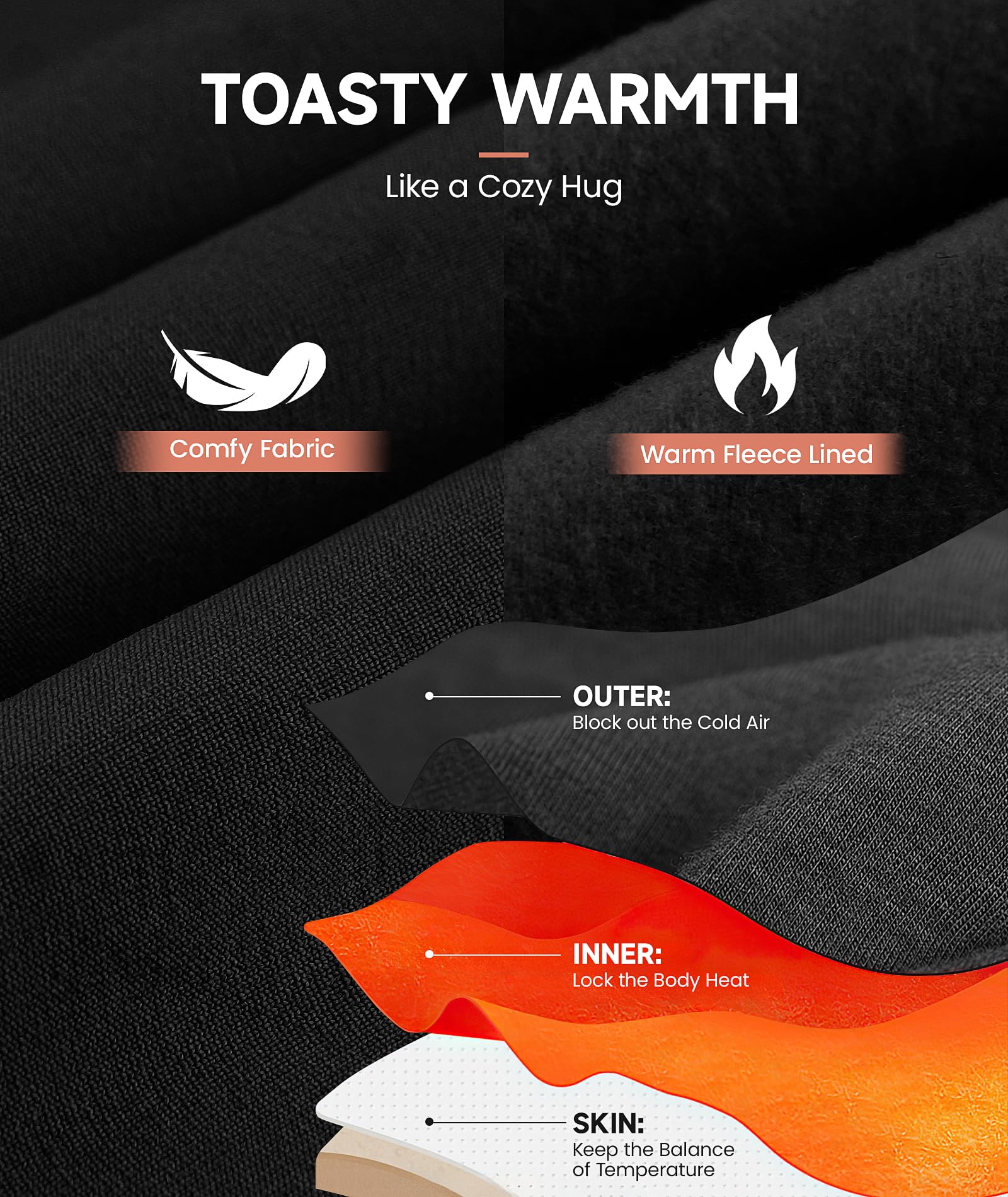 WARM FLEECE LINED: Our thermal tops for women boast a soft fleece lining that provides warmth without bulk. The smooth outer layer is both high-quality and skin-friendly, making it an essential thermal base layer for all season long. Flattering yet comfy, immerse yourself in toasty warmth on those freezing cold days.