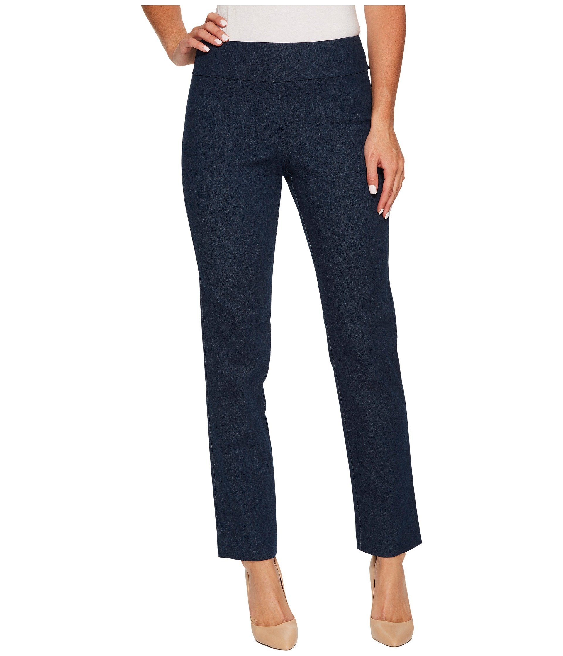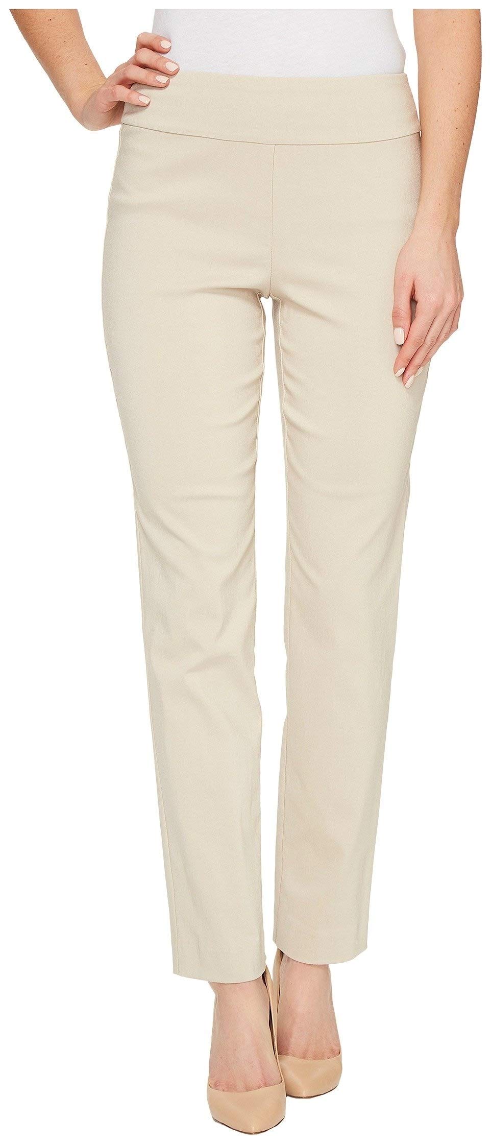 Dressy figure-flattering pant boasts a smooth blend of nylon and rayon with spandex for a smidgen of stretch.