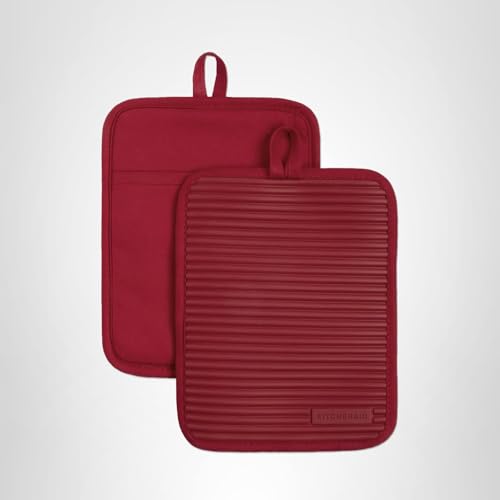 DURABLE, HEAT RESISTANT SILICONE - The Kitchen Aid Ribbed Soft Silicone pot holders are heat resistant up to 500 degrees Fahrenheit to safely shield hands from the heat while cooking and handling hot pans and dishes.