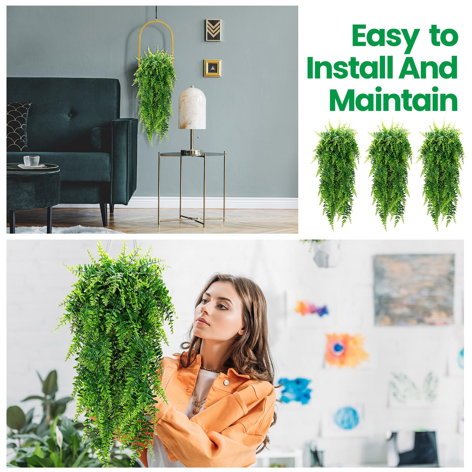 Sturdy and Lasting: these fake ferns are made of quality plastic, resistant to water and sun, and will not fade easily, look vivid and lively; Please kindly note that when you open the package first, there may be a little plastic smell for fake leaves, but it will be completely dissipated after 2-3 days in a ventilated place