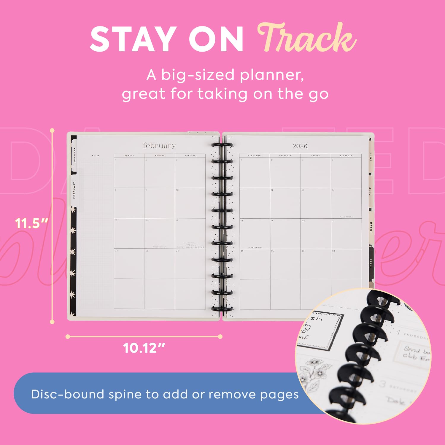 2026 PLANNER: Our 2026 Big planner features floral designs and patterns. The big size has the most room for daily planning, writing, and decorating and is the ideal desk companion for school, work, or home. Write out your priorities and add stickers to personalize your spread!