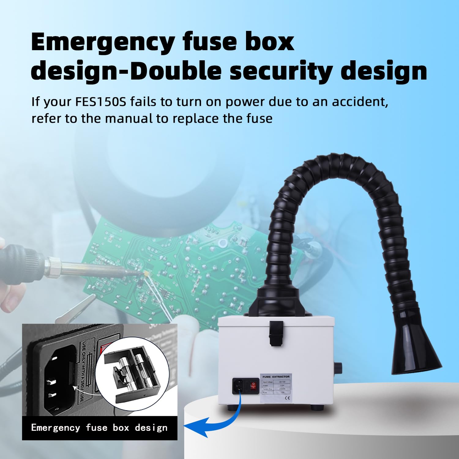 𝐃𝐨𝐮𝐛𝐥𝐞 𝐒𝐚𝐟𝐞𝐭𝐲 𝐃𝐞𝐬𝐢𝐠𝐧. There is a hidden emergency fuse box beside the power button, which is equipped with two 3A fuses. If the machine fails to operate after being powered on, please open the emergency fuse box and replace the fuses inside according to the product manual.