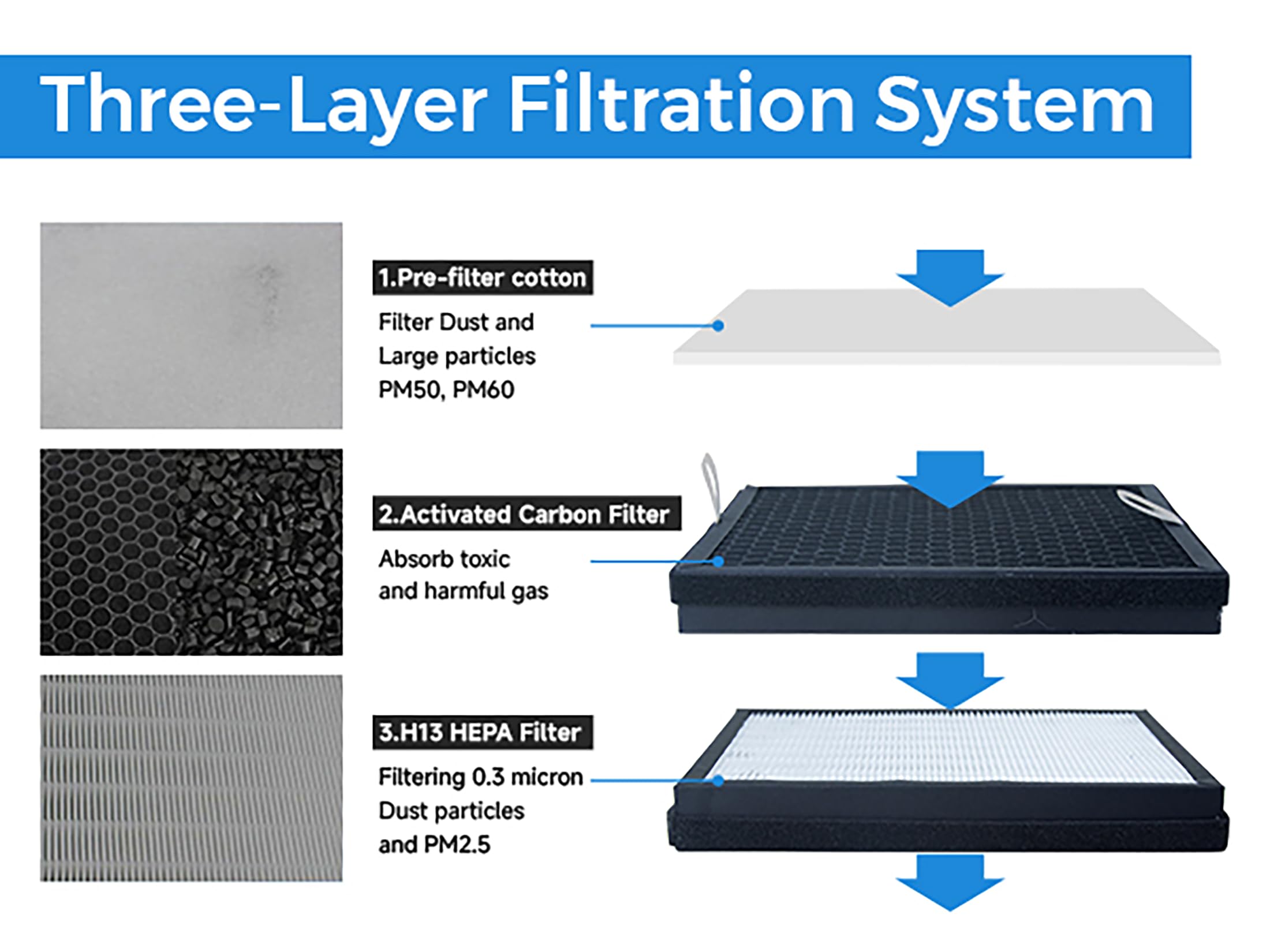 𝐌𝐮𝐥𝐭𝐢𝐩𝐥𝐞 𝐅𝐢𝐥𝐭𝐫𝐚𝐭𝐢𝐨𝐧 𝐒𝐲𝐬𝐭𝐞𝐦 (𝟐 𝐥𝐚𝐲𝐞𝐫𝐬 𝟑-𝐬𝐭𝐚𝐠𝐞 𝐟𝐢𝐥𝐭𝐞𝐫):- KNOKOO fume absorb continuously exhaust the welding fume and lead mist, and rapid discharges it into the Pre-filter cotton, HEPA filter and activated carbon filter to purifier smoke and unpleasant odors. each layer can be replaced separately. Three -layer filter Structure has larger dust capacitance than single-layer filter core, longer service time of filter core and more cost-saving. up to save 10