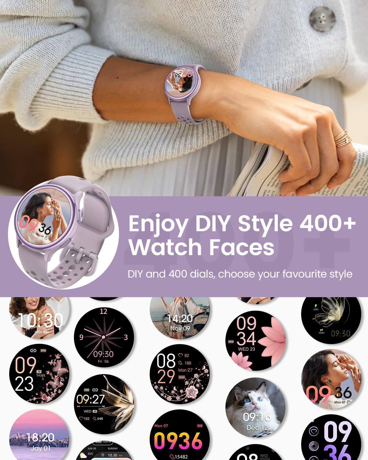 【1.27" AMOLED Display & Customizable Watch Faces】 Immerse yourself in stunning visuals with a brilliant 1.27-inch AMOLED screen that brings every detail to life. Explore over 400 dynamic watch faces or personalize your display with your favorite photos. Whether for work, workouts, or casual outings, Smart watches for women and men effortlessly complements any style, making it the perfect accessory for both men and women