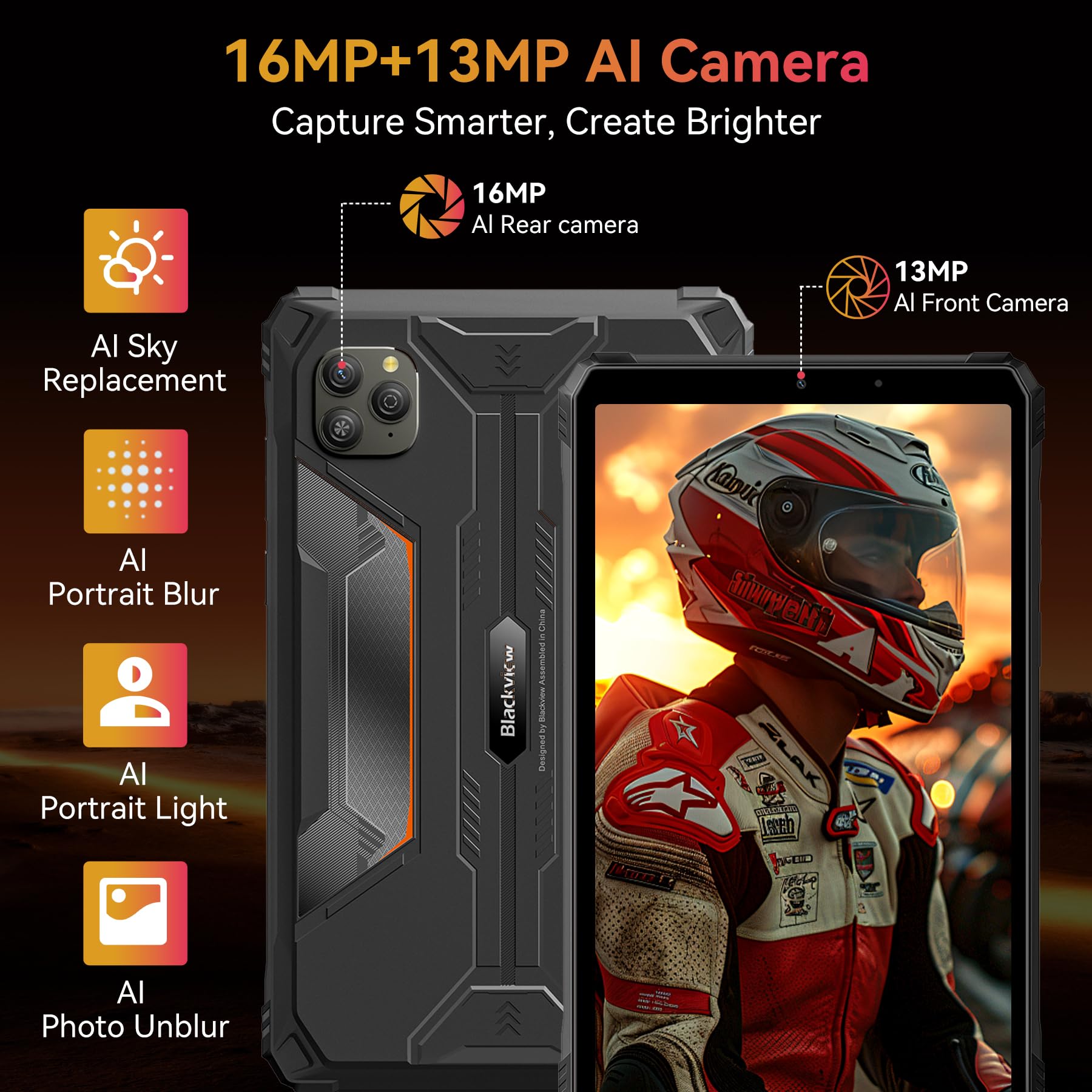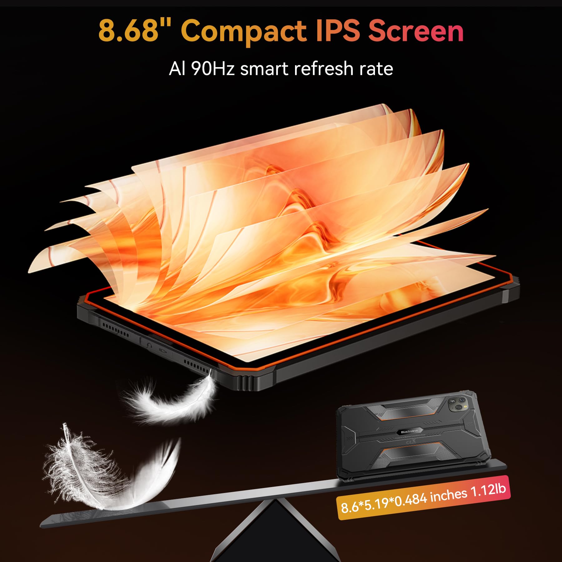IP68/IP69K Waterproof, Drop-Proof: The blackview waterproof tablets is built to withstand tough environments, this military-grade tablet meets IP68, IP69K, and MIL-STD-810H standards—resistant to water, dust, and drops up to 1.5m. can be used underwater at a depth of 1.5 meters for 30 minutes, effectively protecting the device from accidental falls. Whether it is outdoor adventures or construction site operations, it is a reliable partner that you can trust.
