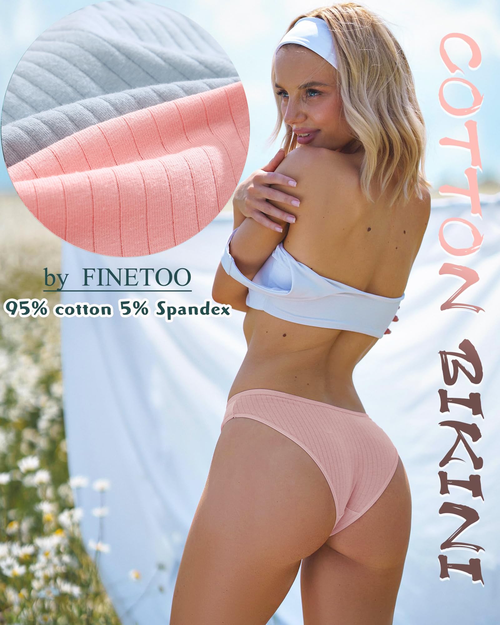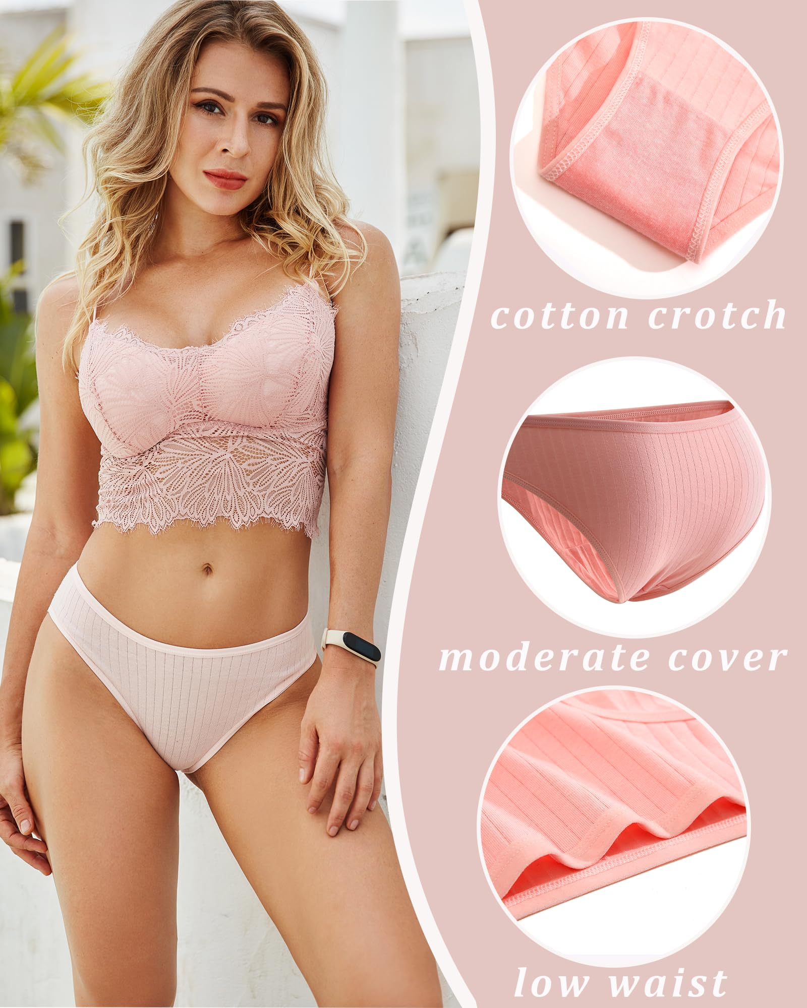 Cotton Underwear for Women: 95% PREMIUM COTTON, 5% spandex. Crotch inner lining: 100% cotton. Comfortable and breathable fabric with RIBBED TEXTURE is more lovely and cute. Women should be able to wear breathable fabric that's also fashionable/doesn't make feel frumpy.