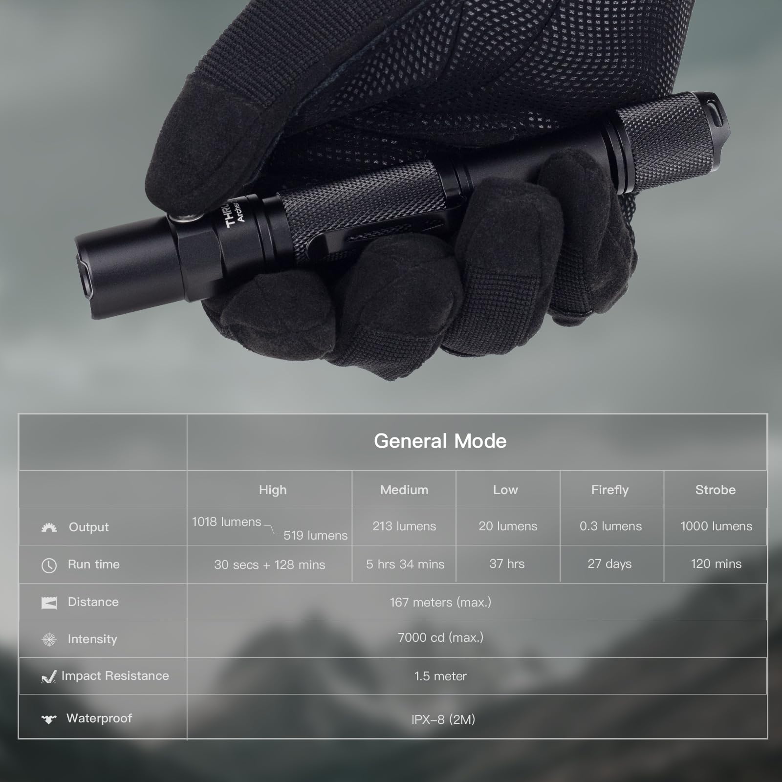 TC15 V3 - Powerful Illumination: The TC15 V3, powered by a CREE XHP 35.2 LED, produces an Extreme Output of up to 2403 high lumens, making it one of the brightest rechargeable flashlights of ThruNite. It reaches a beam distance of 731 ft (223 m).