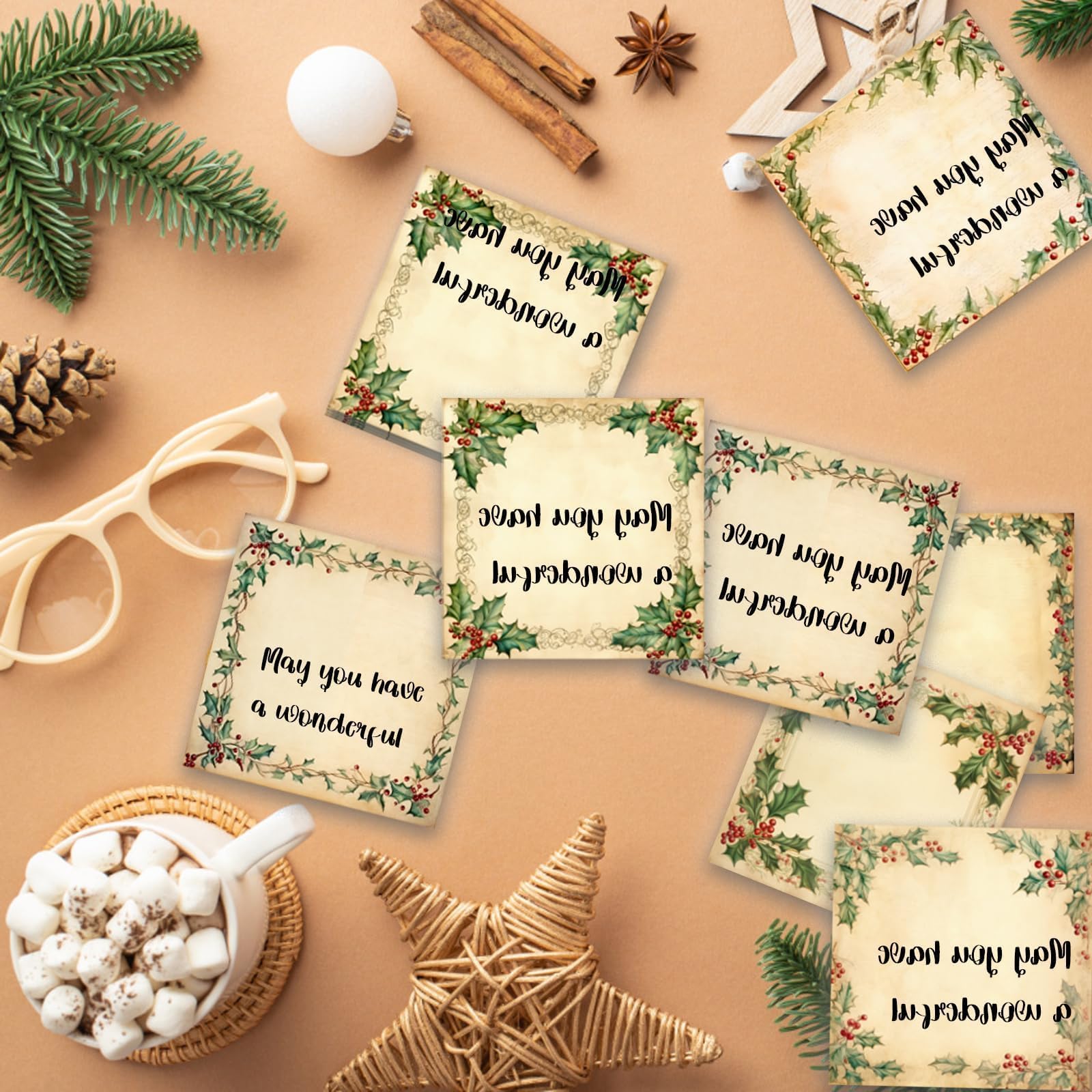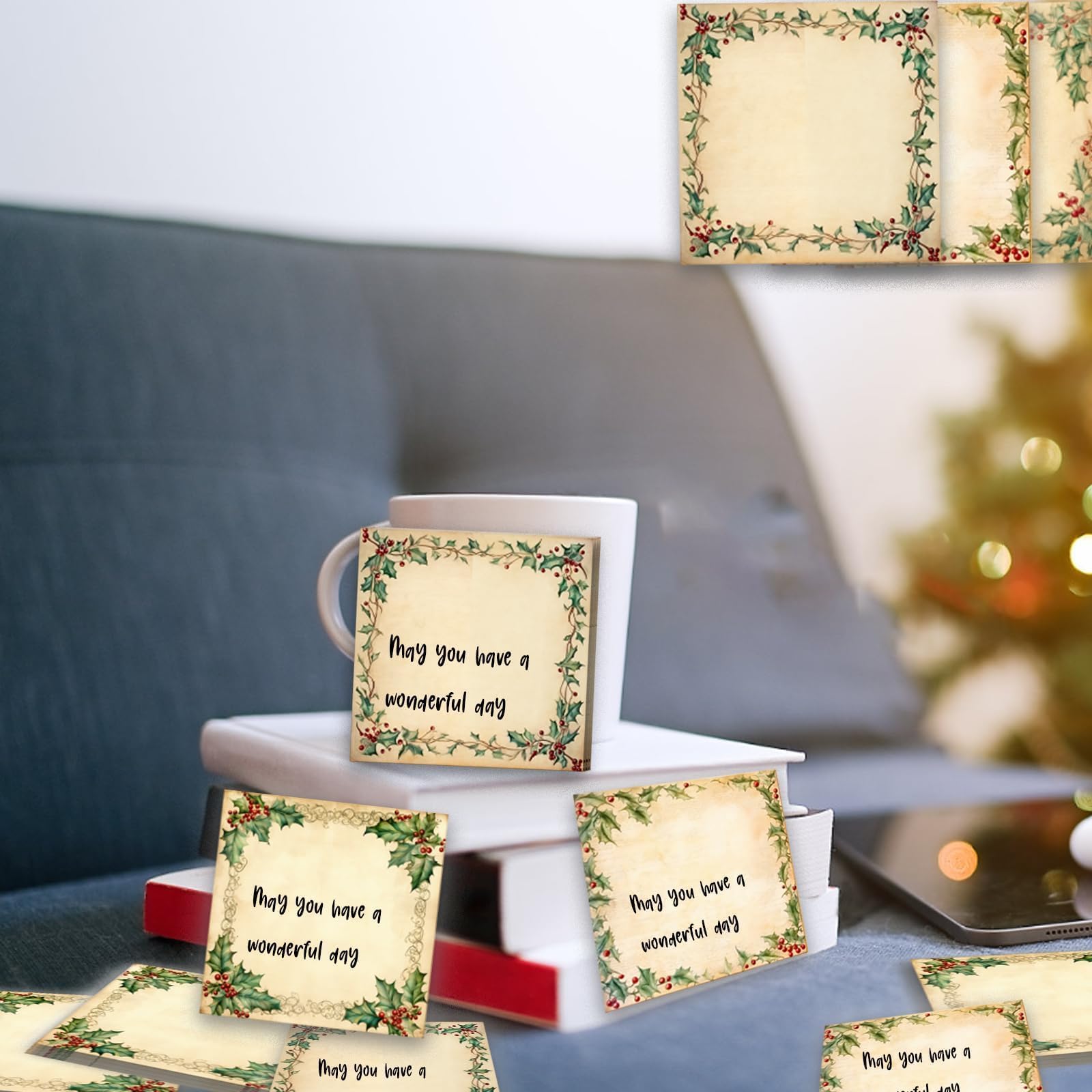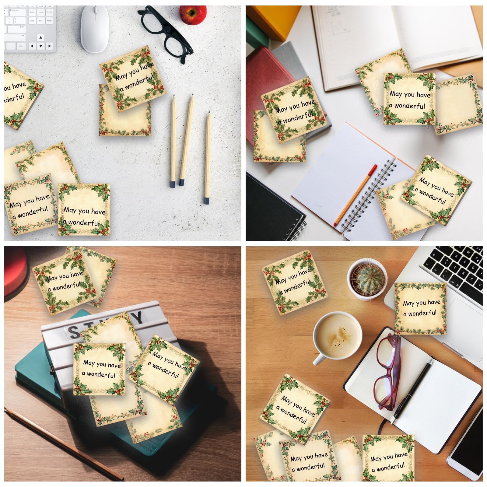 Christmas Sticky Note Pad Set: The set includes 9 vintage Christmas wreath themed notepads, 50 sheets each, 450 sheets in total; Rich in content and beautifully designed, they can satisfy your daily life needs for various uses and replacements, and you can also share them with your friends and family.