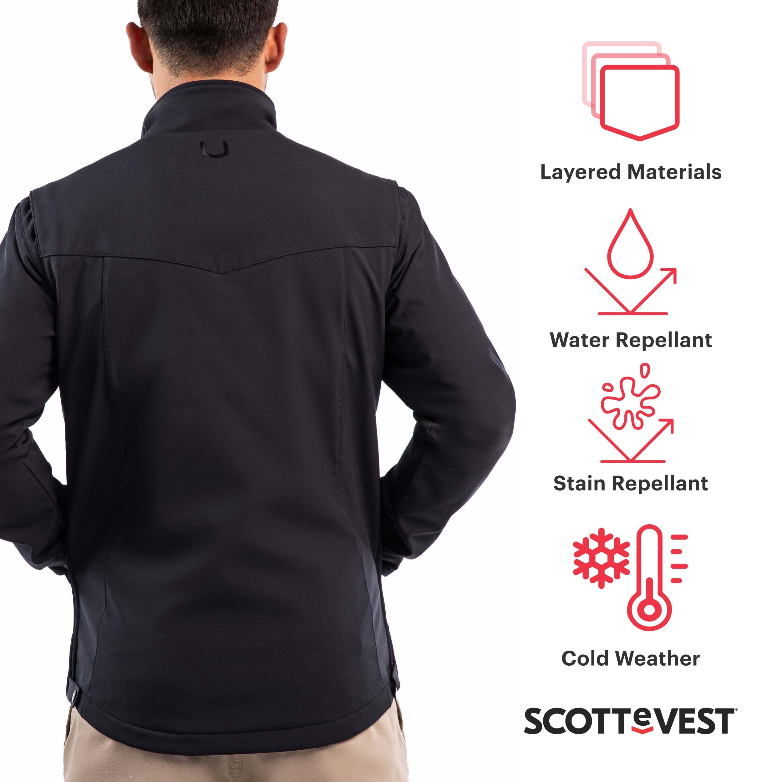 [ Stay Connected Within Hands Reach ] - Using hidden conduits our men's security outerwear fits cell phones and most tablets keeping them charged without the tangled wires. Easily store your boarding pass passport and wallet in one of the many easy-to-access compartments