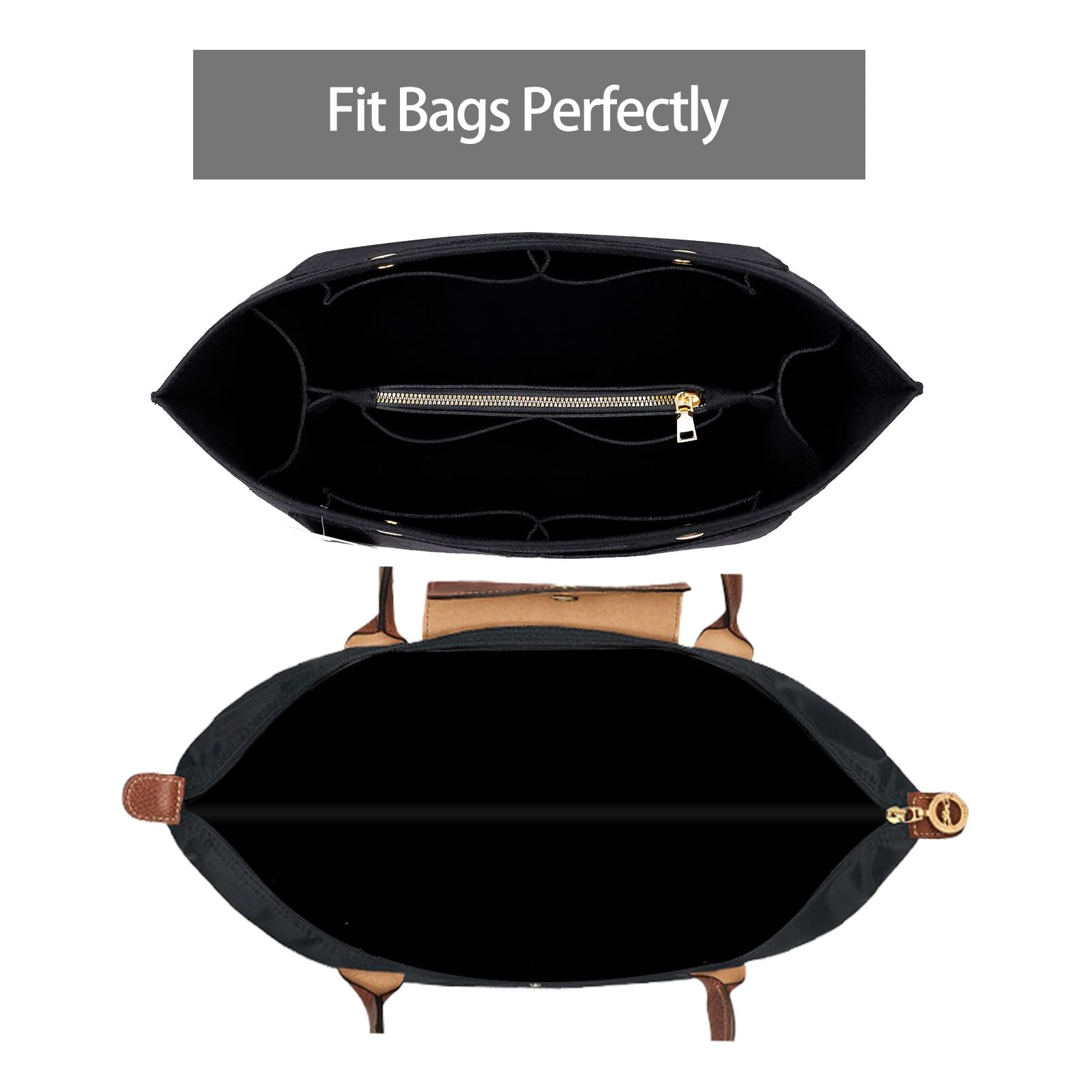 [💗Keep Bag Clean & Shipshape For Le pliage & Multi Pockets For Your Bags]:12Pockets Total Purse Organizer Including One Detachable Zipper Pouch / Insert , Phone Pocket etc. Perfect Oval Tote Special For Your Longchamp,etc. With Handle For Easy Switch and Snaps To Keep Your Belongings Safe