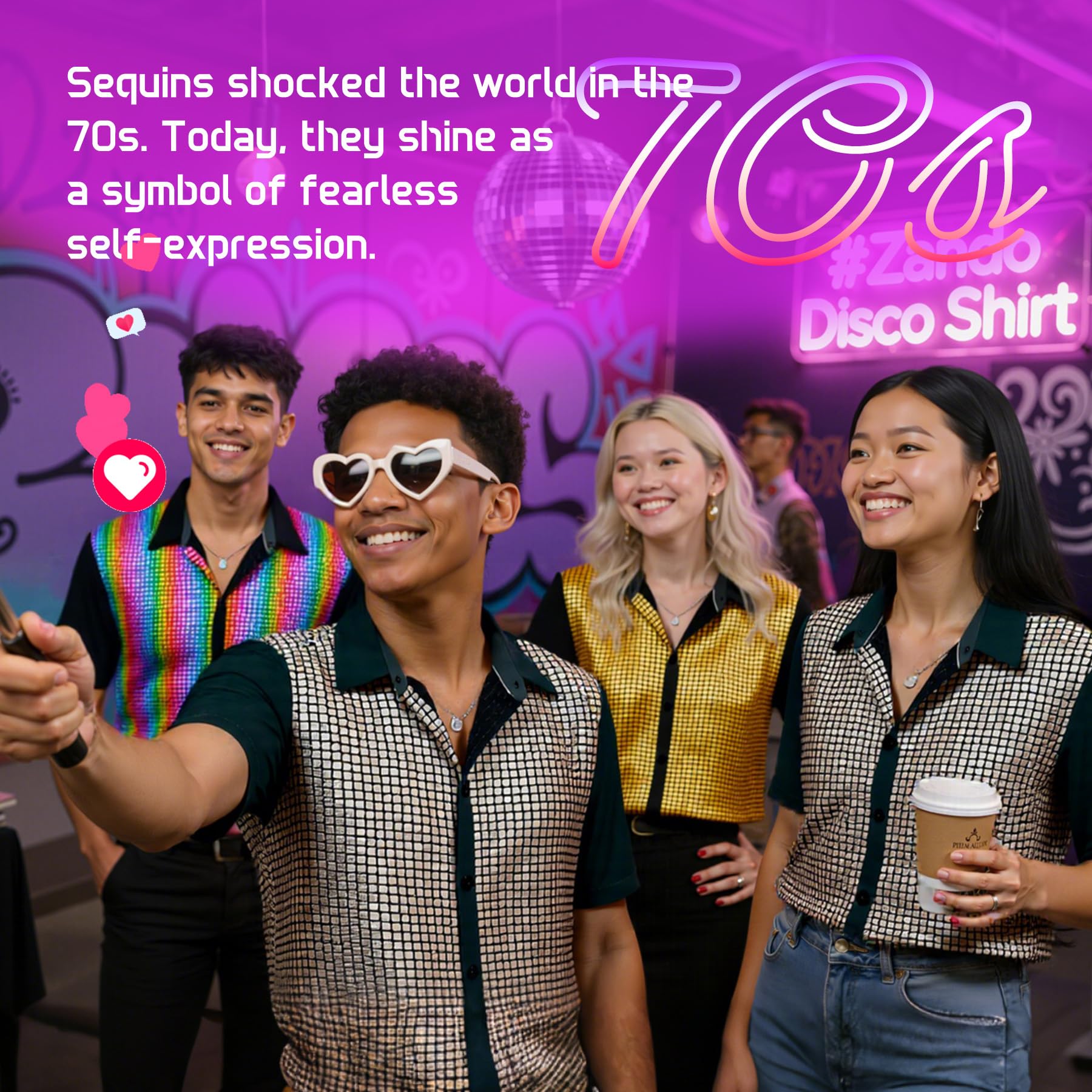 Wearable Courage:Channel the free spirit of disco’s golden era—where sequins were armor against conformity. More than a shirt, it’s a statement that celebrates self-expression, nostalgia, and the courage to stand out.