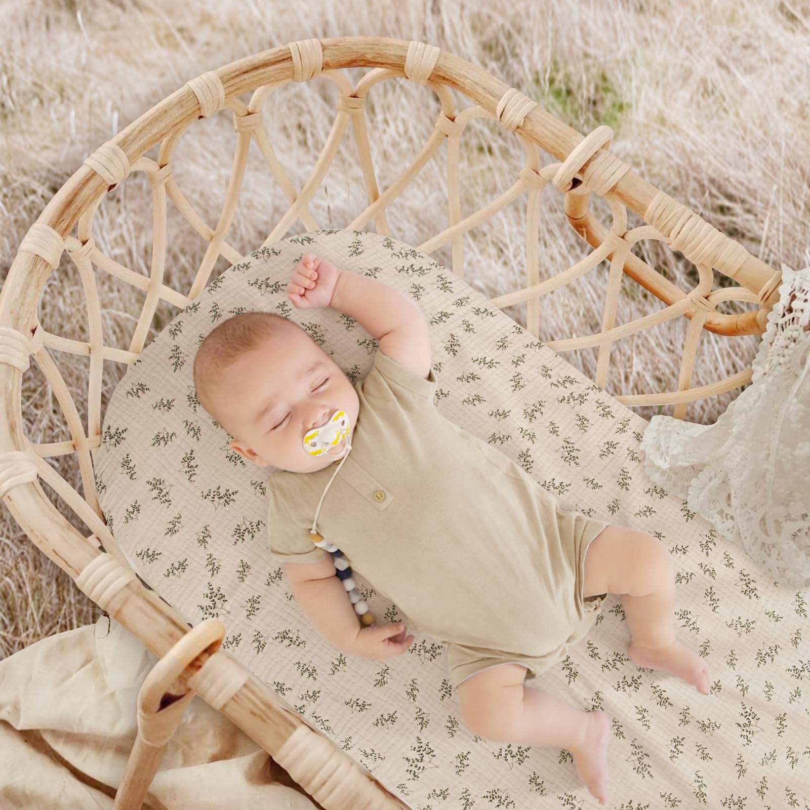 Soft and Breathable: Our bassinet sheets are crafted from 100% muslin cotton, a gentle material that is safer for your baby's sensitive skin, providing a cozy environment for your baby.