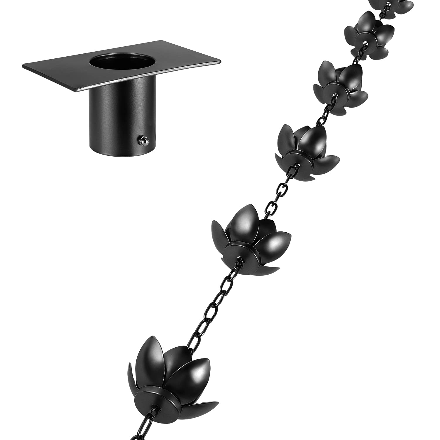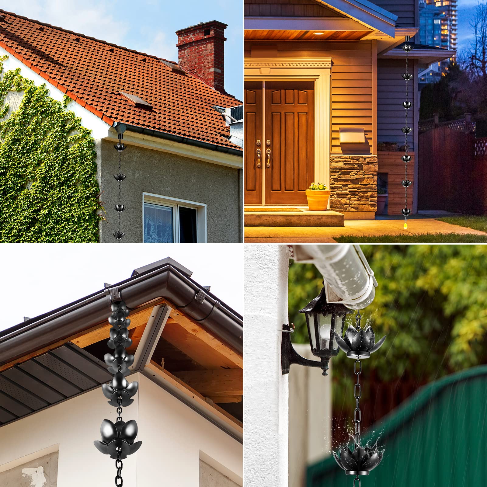 🏡Extra-Long & Adjustable Set: This rain chain for gutters includes an 8.5ft chain (3 times longer than other products) with 12 lotus flower cups, suitable for a standard single-story house. Shorten/lengthen the chain length to fit your building by removing/adding the cups/links.