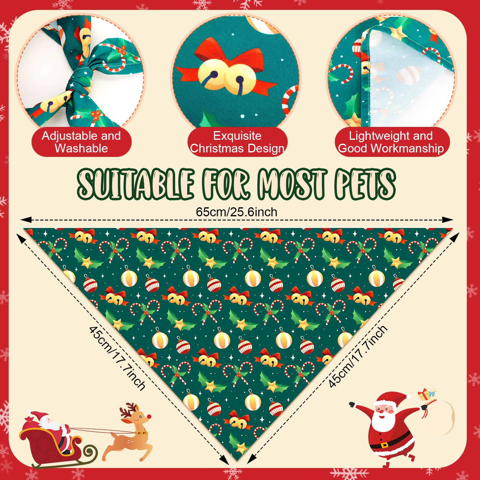 Wide Applications: our christmas dog bandanas look festive and beautiful, you can use these to decorate your dogs or cats and make them fashionable and fantastic in every occasion; It is good for Christmas, let's make your pet show a different appearance