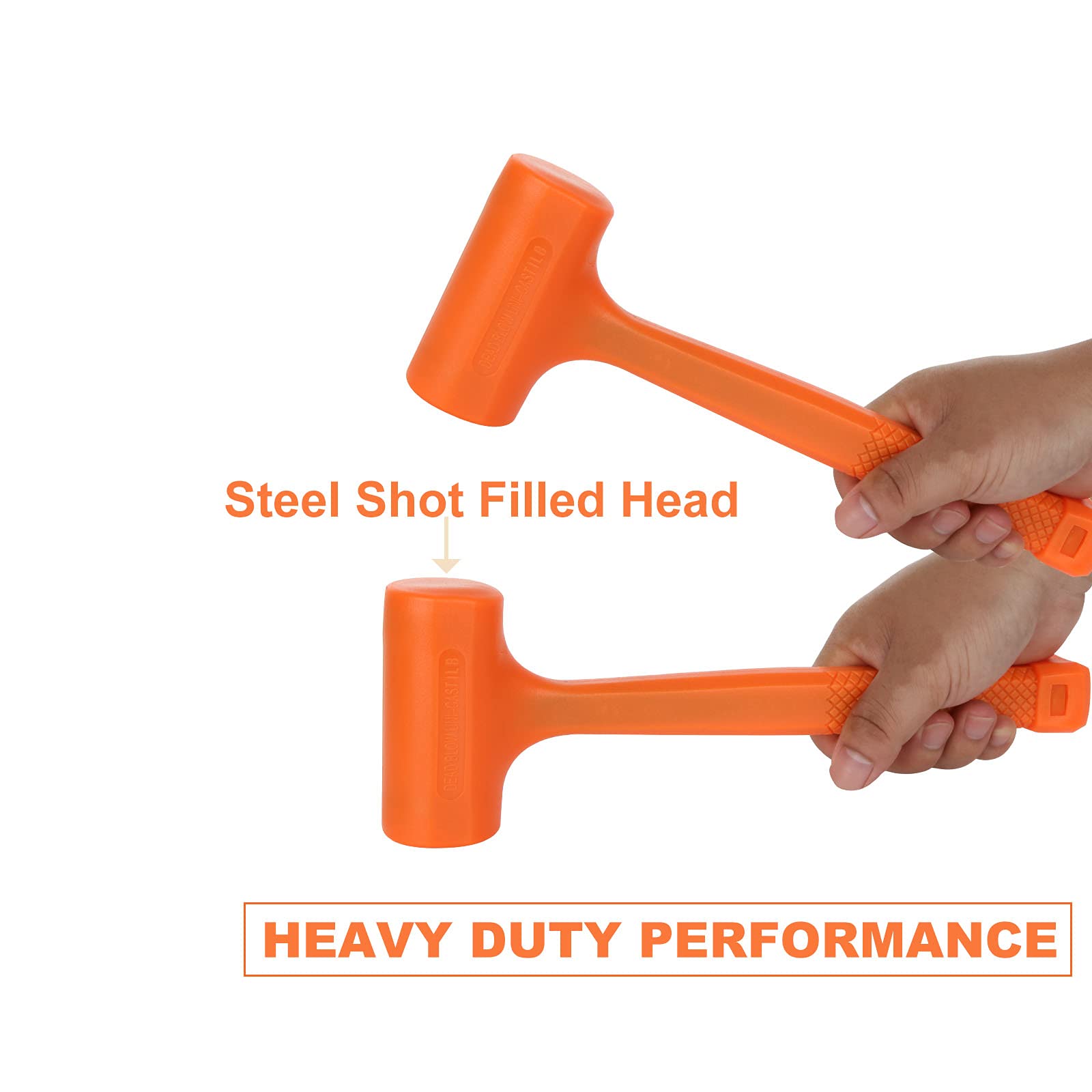 You Will Get: 2 Pack 1lb dead blow hammer. This bright color makes orange rubber hammer easy to locate and differentiate between other hammers in your tool kit