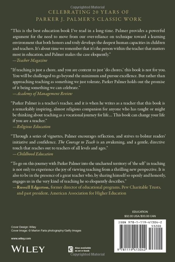 Wisdom that's been inspiring, motivating, and guiding teachers for two decadesThe Courage to Teach speaks to the joys and pains that teachers of every sort know well. Over the last 20 years, the book has helped countless educators reignite their passion, redirect their practice, and deal with the many pressures that accompany their vital work. Enriched by a new Foreword from Diana Chapman Walsh, the book builds on a simple premise: good teaching can never be reduced to technique. Good teaching comes from the identity and integrity of the teacher, that core of self where intellect, emotion, and spirit converge--enabling 'live encounters' between teachers, students, and subjects that are the key to deep and lasting learning. Good teachers love learners, learning, and the teaching life in a way that builds trust with students and colleagues, animates their daily practice, and keeps them coming back tomorrow. Reclaim your own vision and purpose against the threat of burn-out Understand why good teaching cannot be reduced to technique alone Explore and practice the relational traits that good teachers have in common Learn how to forge learning connections with your students and "teach across the gap" Whether used for personal study, book club exploration, or professional development, TheCourage to Teach is rich with time-honored wisdom, and contemporary clarity about the ancient arts of teaching and learning.