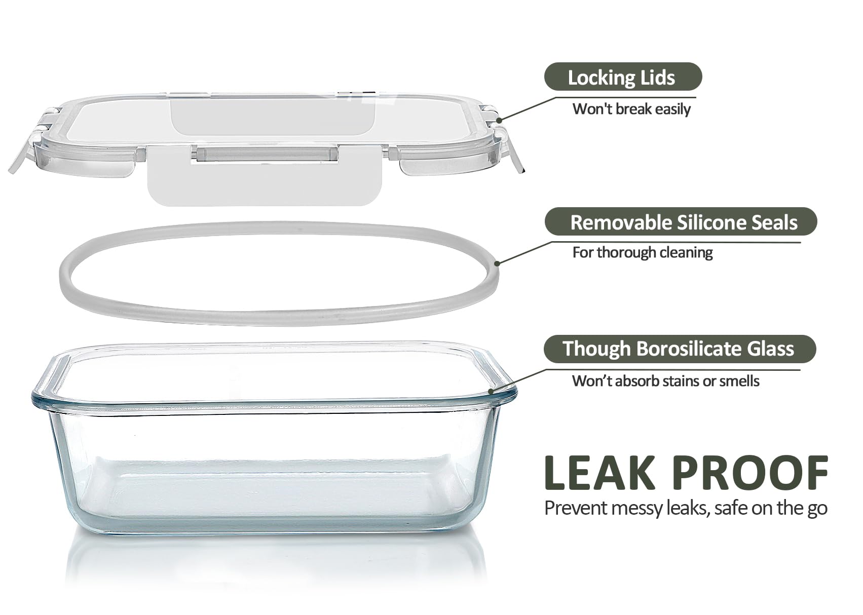 PREMIUM BOROSILICATE GLASS:Our glass storage containers are made from premium borosilicate glass, which is stronger than others' glass food storage containers, safely go straight from the refrigerator to the microwave or oven to the table