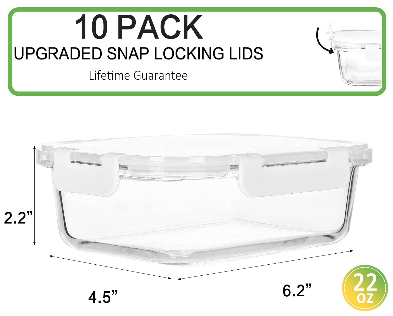10 PACKS GLASS MEAL PREP CONTAINERS: With 10 packs 22oz (6.2 in x 4.5 in x 2.2 in) single compartment food Prep Containers with Lids, They are great for meal prepping. Save time by cooking and freezing your meals for later