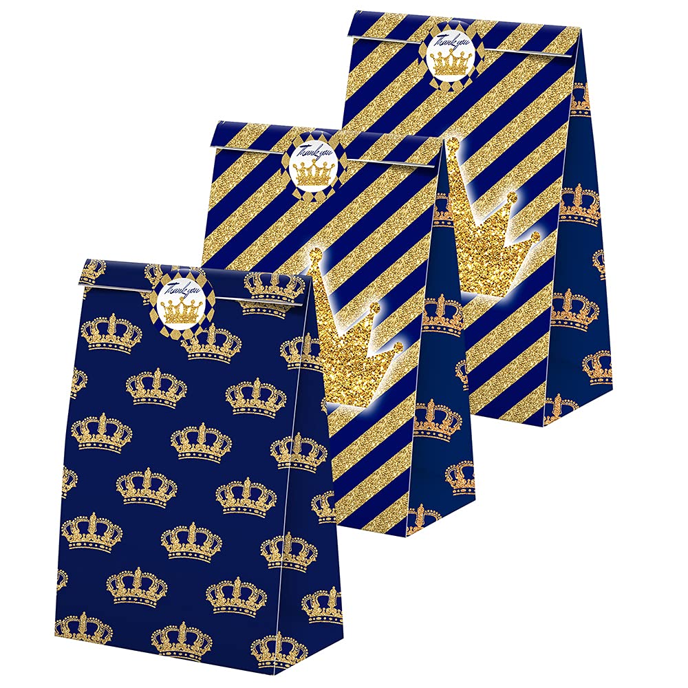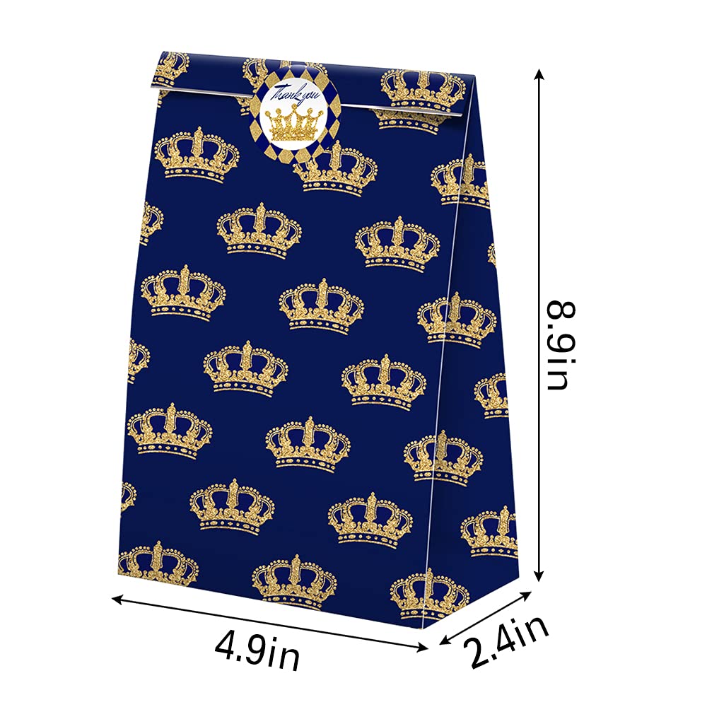 Introducing our premium Prince Party Favor Bags – a set of 24 regally crafted bags fit for a royal celebration! Measuring 4.9" x 2.4" x 8.6" (L x W x H), these high-quality craft paper bags are adorned with coordinating prince-themed stickers for a complete and enchanting set. Fit for any royal adventure, whether it's a princely birthday, baby shower, or majestic celebration, these exceptionally sturdy and vividly printed bags add an extra touch of elegance to your event. Crafted with precision, our commitment to customer satisfaction includes reliable Amazon logistics and prompt assistance for any inquiries. Make your celebration truly majestic with these durable and stylish prince party favor bags!