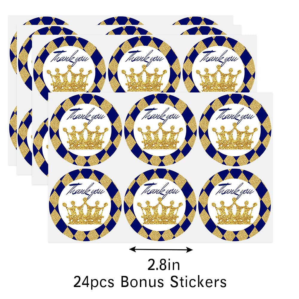 Package Includes: 24 enchanting prince goodie bags, each adorned with 24 coordinating prince party stickers for a complete set.