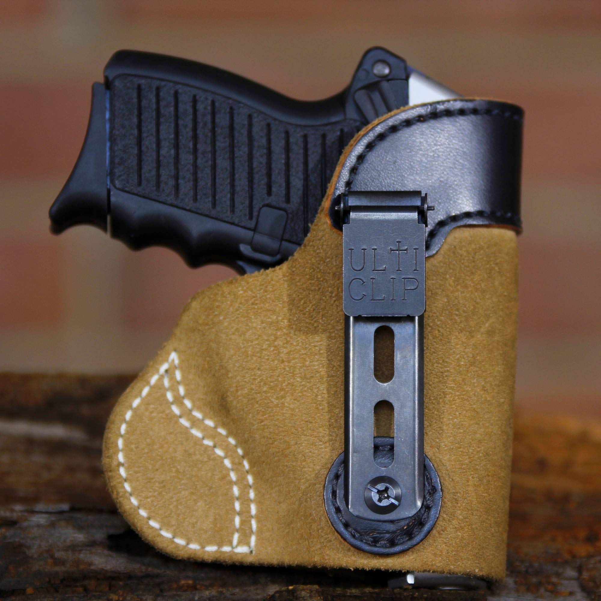 Best option for belt-less carry - Ulticlip is unlike any traditional holster clip on the market. It clamps down hard and secures to your waistband, pocket, vest or even inside your off-body carry bag without the need for a belt.