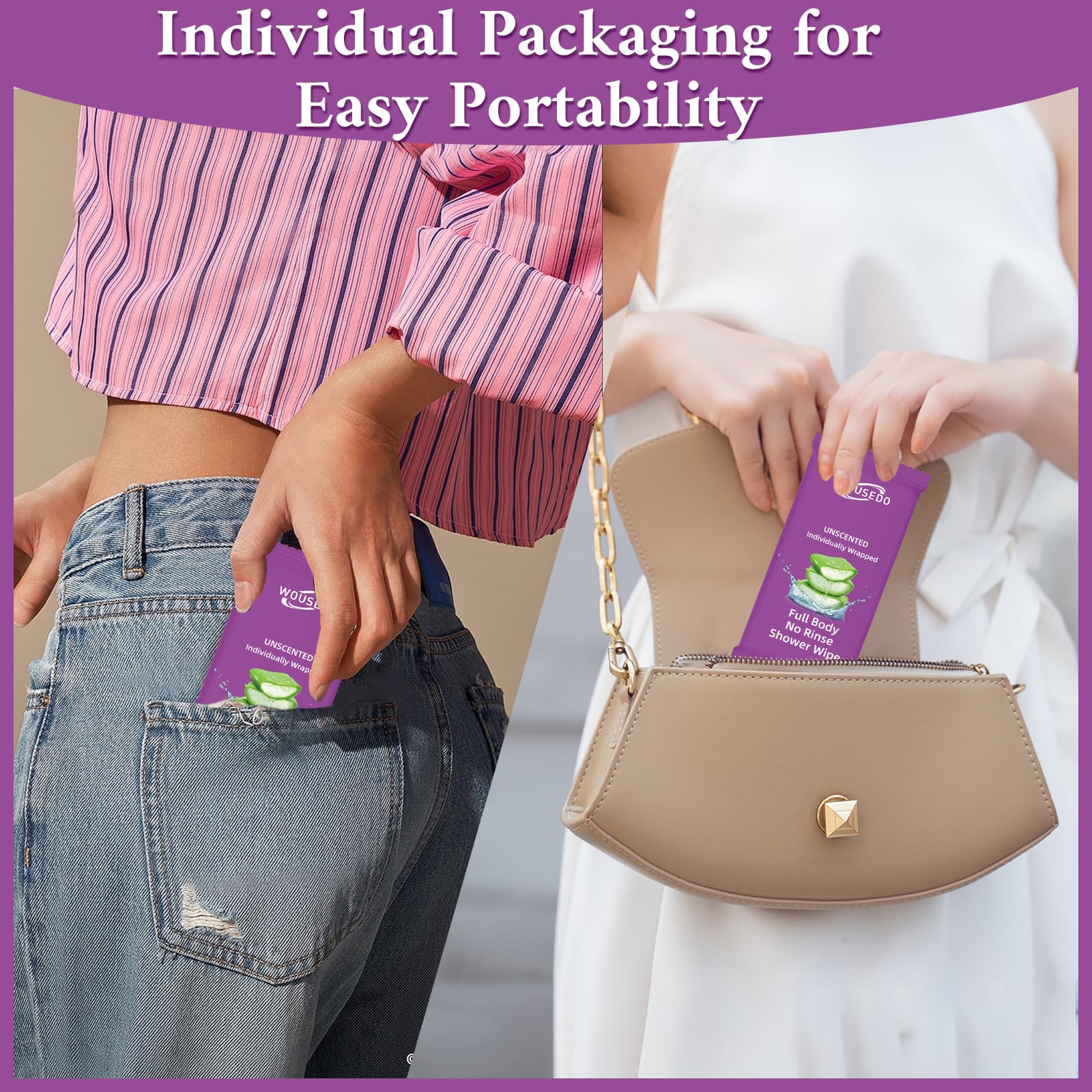Gentle Formula: WOUSEDO body wipes are made of high-quality non-woven fabric and RO pure water,PH balanced and rich in aloe vera leaf juice and vitamin E, they do not contain alcohol or any chemicals, making them more skin friendly, effectively cleansing the body, and not causing skin irritation