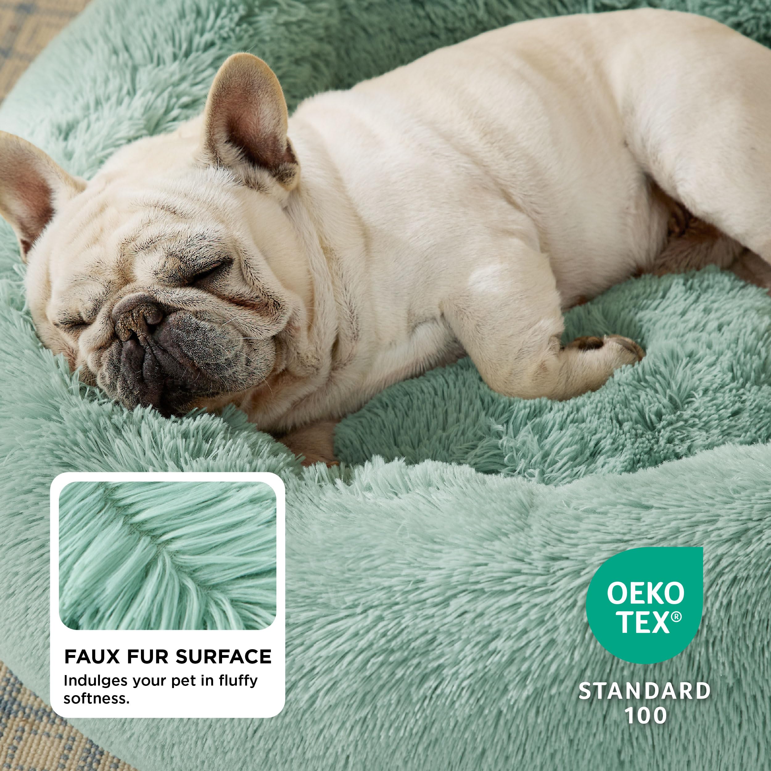 Oprah Daily Award-Winning Comfort:Recognized by Oprah Daily as the perfect donut dog bed for curl-up sleepers, this round calming pet bed is loved for its extra-fluffy faux fur, raised rim for furry heads, and cozy design that blends seamlessly into any home. Petite sizes (XS–M) are fully machine washable for added ease.